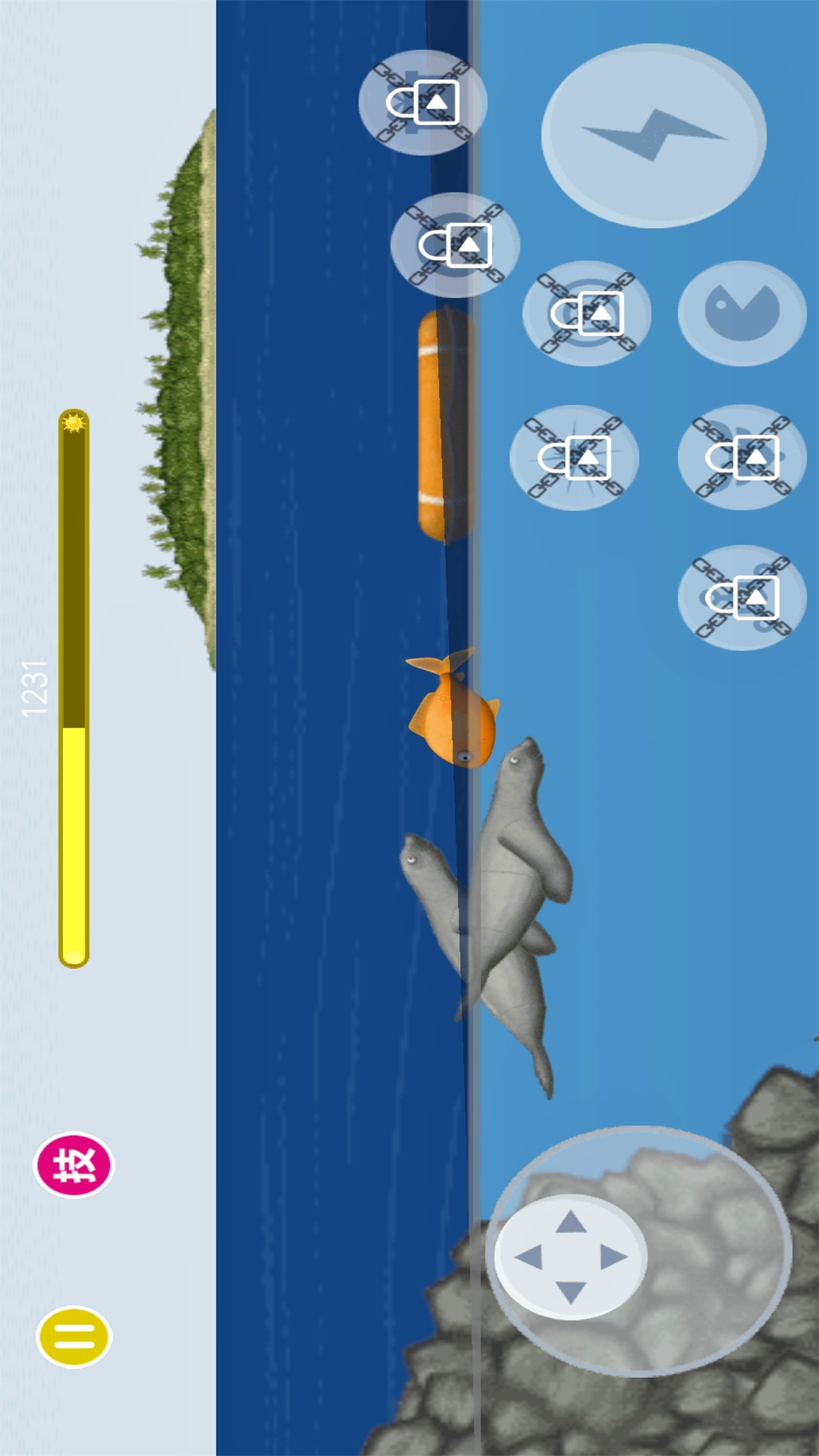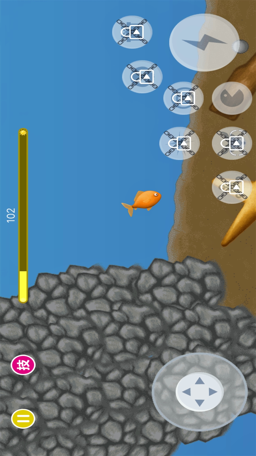 3、在这里开始移动小鱼,不断的冒险,左右灵活的移动鱼儿到处的冒险;