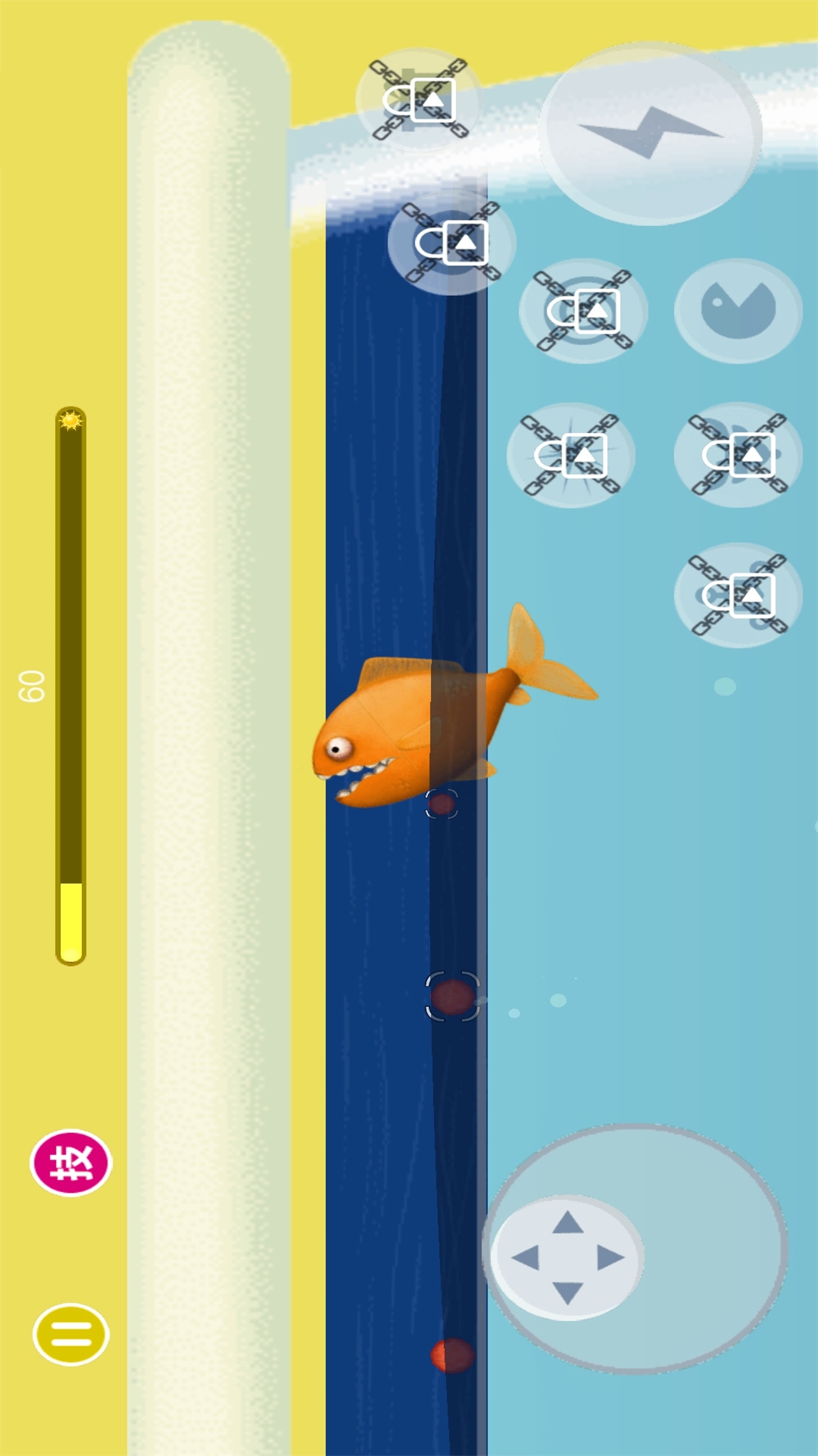 2、消耗金币提升鲨鱼属性,速度、血量、撕咬范围、饥饿值等,增强生存和猎杀能力;