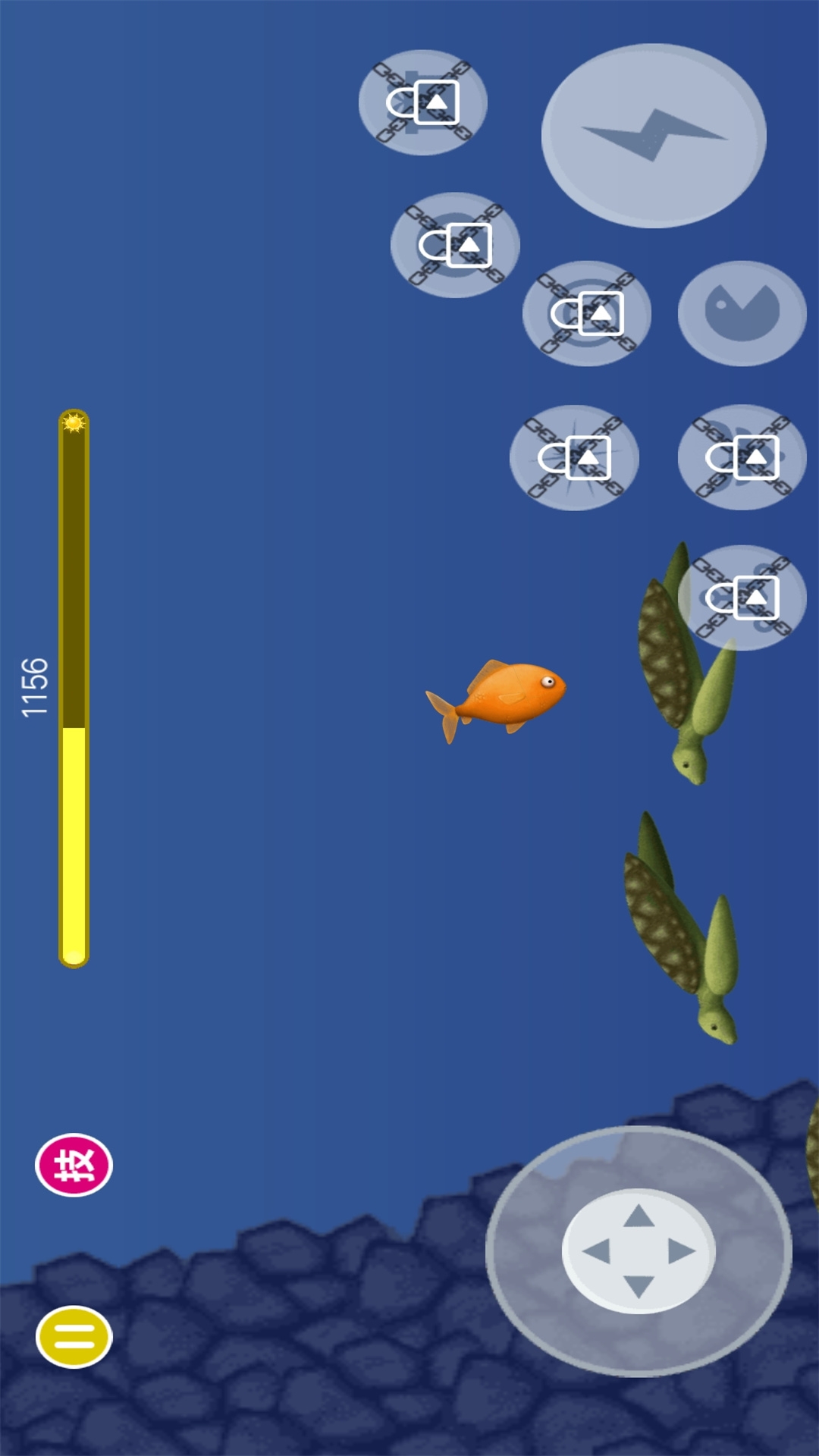 3、深入鱼群之中,到处的移动,吞噬小鱼,不断的成长。