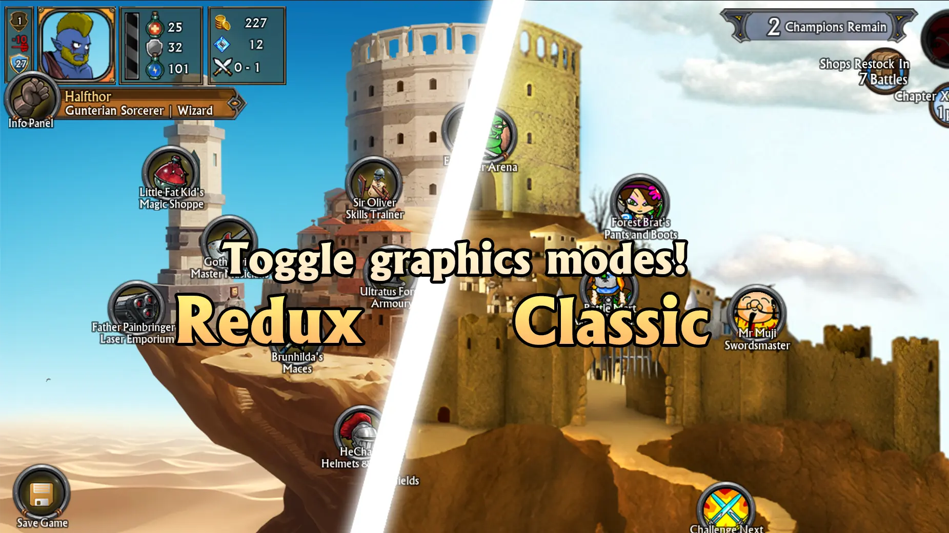 1、画面支持一键切换重制版与经典像素风格,从角色到商店老板全部适配,满足怀旧与现代双重审美需求。