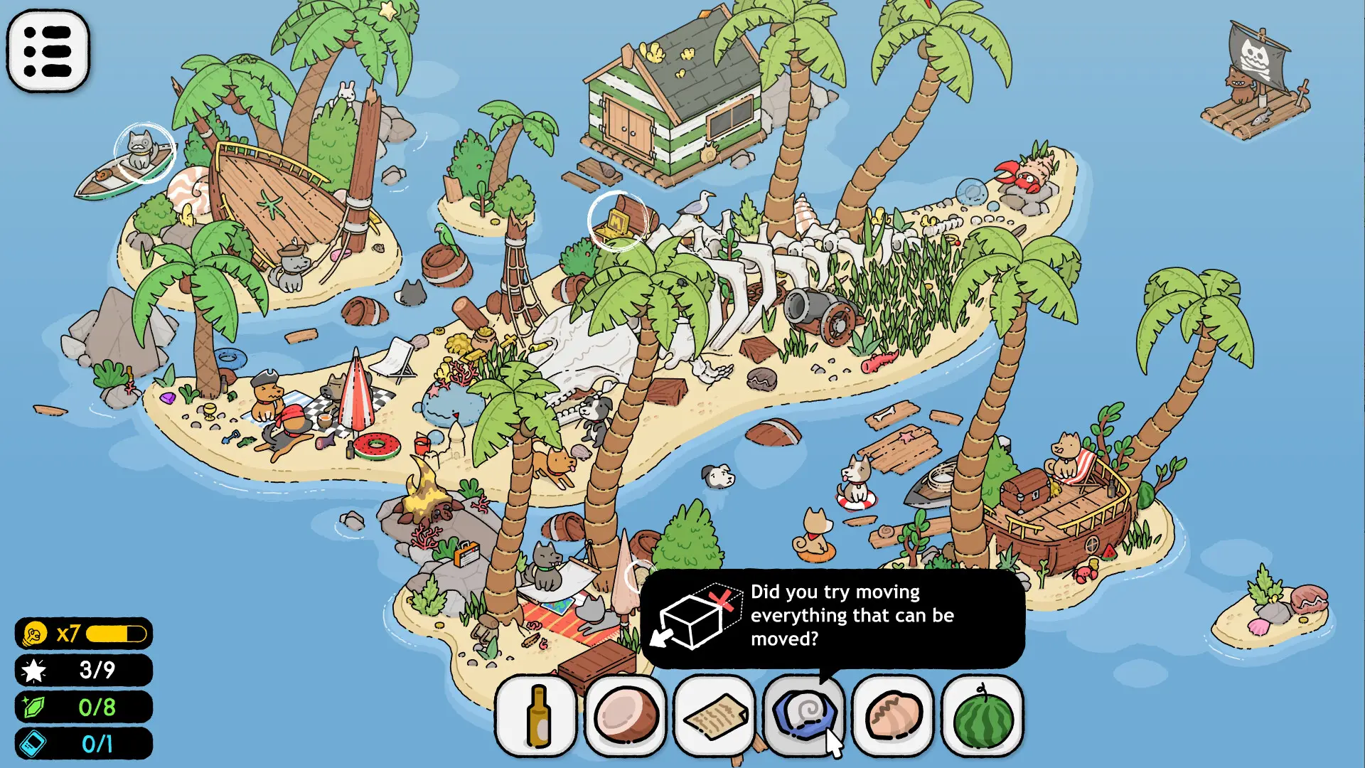 1、进入关卡后先整体扫视场景,注意角落、阴影和物品重叠区域,许多猫咪喜欢躲在视觉盲区。