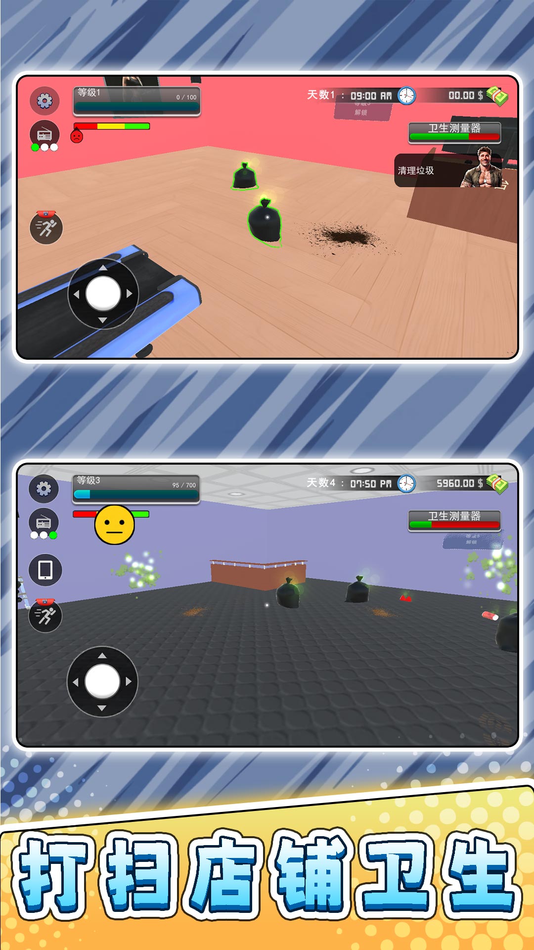 1、模拟真实天气,如晴天、雨天、雪天和时间流逝,如昼夜循环,影响健身房的客流量和角色行为;
