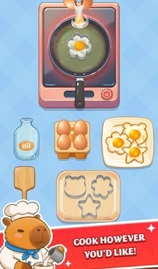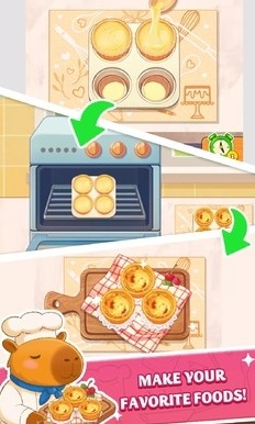 1、玩家将扮演一位厨师,在游戏提供的温馨厨房环境中为各式顾客提供烹饪服务。