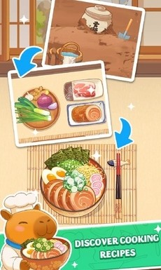 2、玩家可以探索并掌握来自世界各地的多样美食菜谱,满足游戏中不同顾客的口味需求。