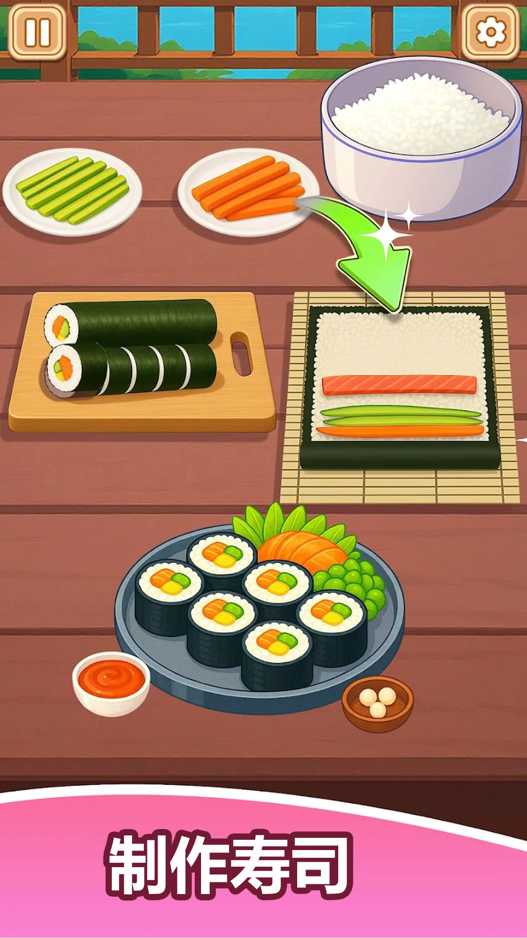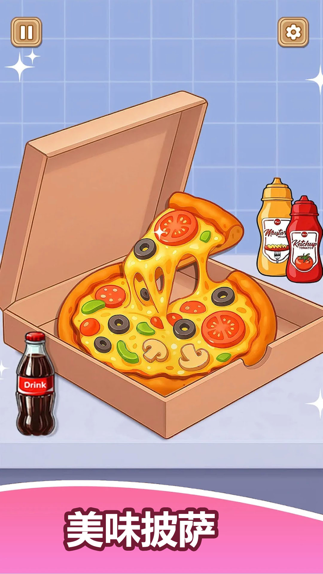 3. 模拟经营元素融入关卡,需要共同管理订单流与时间,用赚取的金币解锁新厨房场景和更具挑战的食谱。