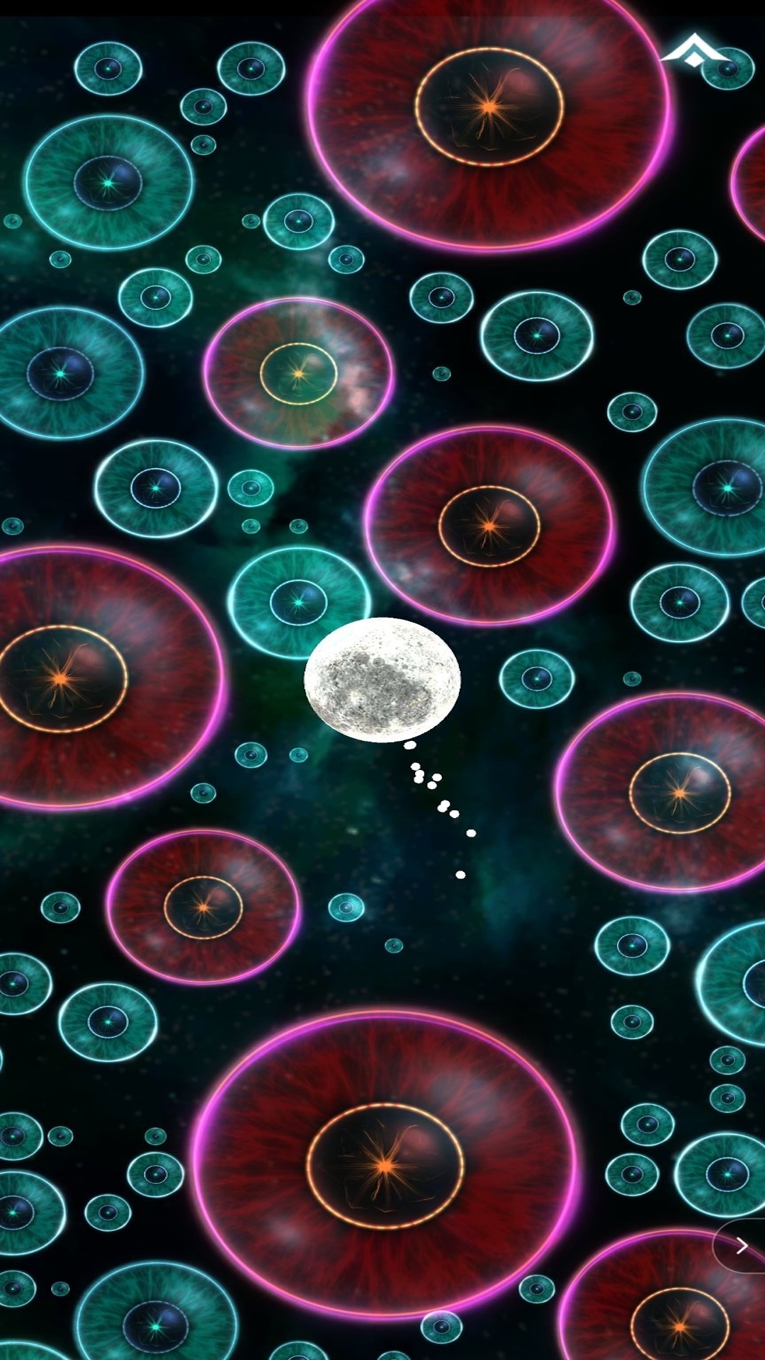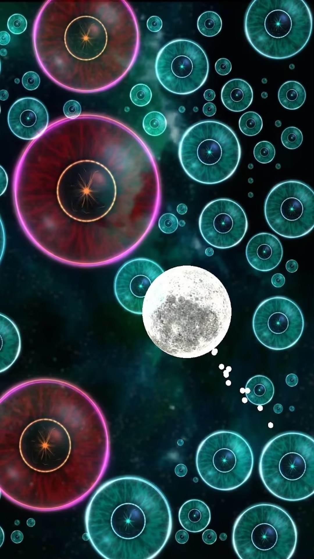 4、通过手指滑动屏幕控制你的星球在广袤宇宙中移动,寻找并追逐那些体积比你更小的天体目标。