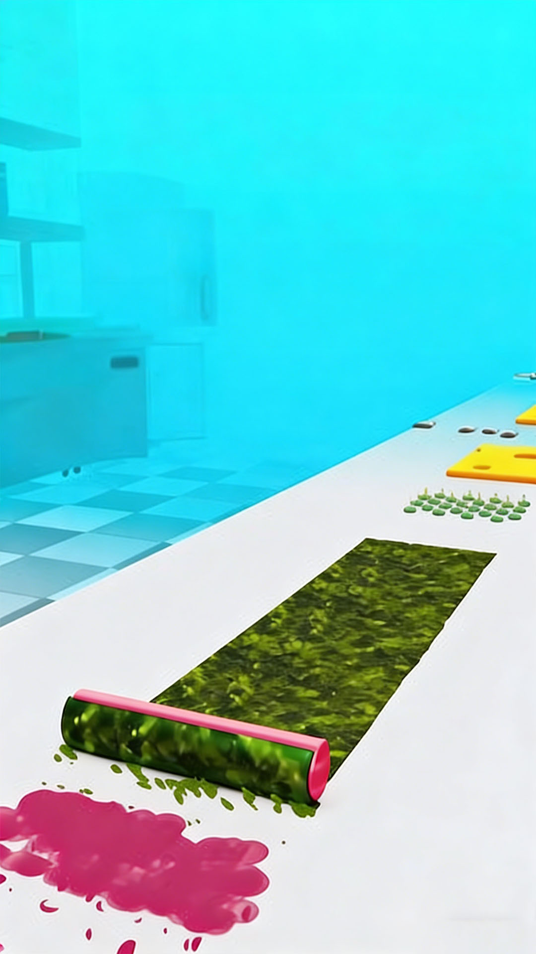 1、通过点击和拖拽操作,将仓库中的基础食材与水进行充分融合。