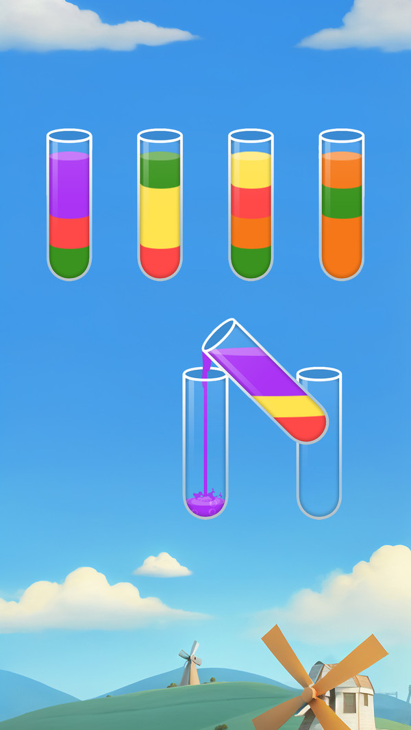 2、色彩搭配明亮舒适,液体流动的动画效果极其流畅,操作反馈清脆明确,整体视听体验达到了同类游戏的优秀水准。