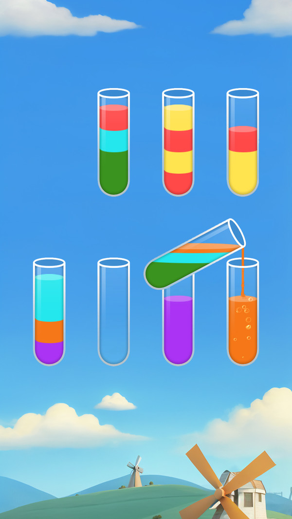 1、游戏在排序解谜的基础上引入了独特的液体物理特性,颜色混合与分离的视觉效果逼真且令人满足。