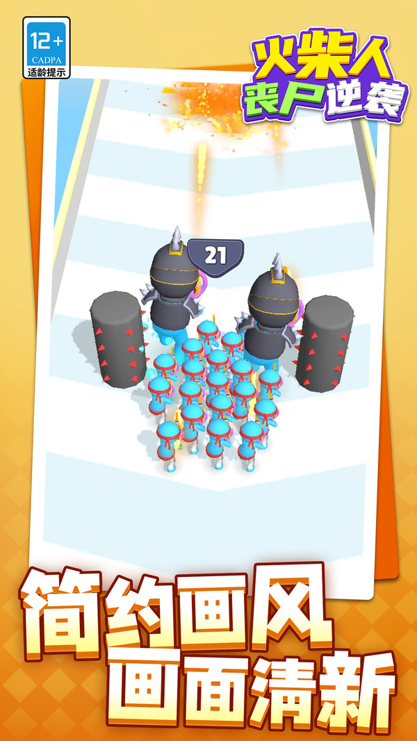 1、游戏节奏紧凑,射击手感爽快,在成群的火柴人丧尸中杀出重围,能获得以一当百的割草快感与压力释放。