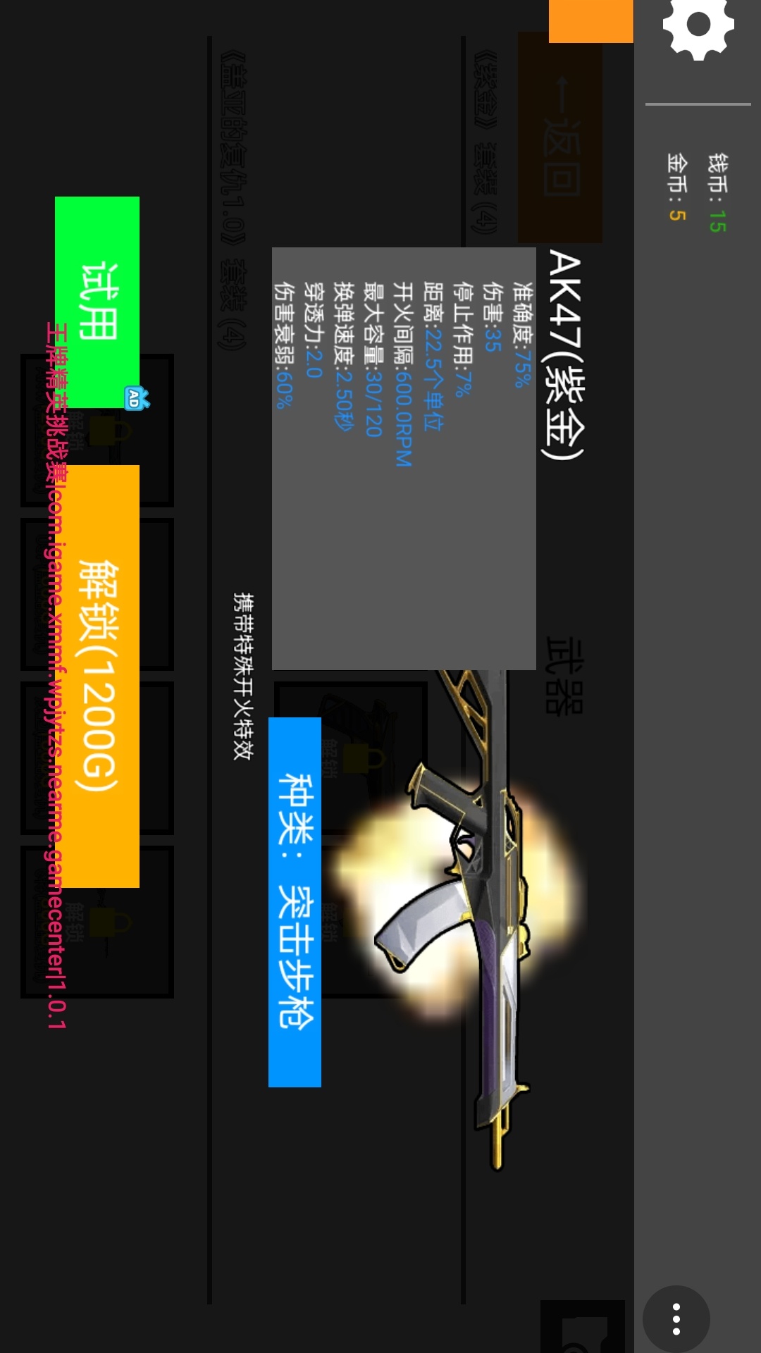 2、初始仅配备基础手枪,需通过完成任务获取金币解锁高级武器,例如AK-47,形成渐进式成长体系;