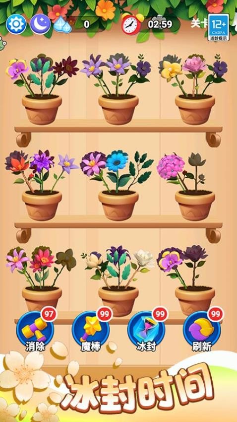 3、通过关卡奖励,解锁并收集各式精致花盆、花园装饰与小精灵伙伴,打造独一无二的专属花园空间。