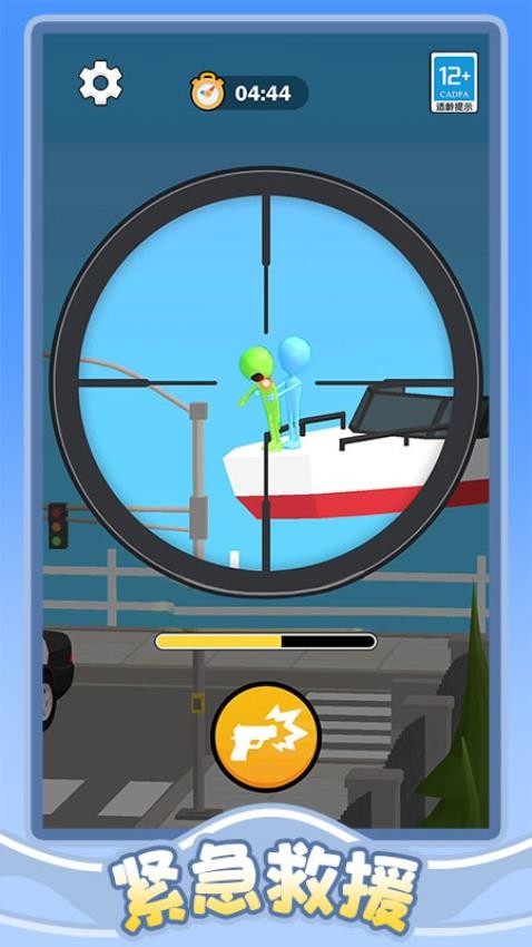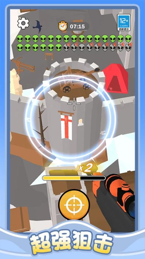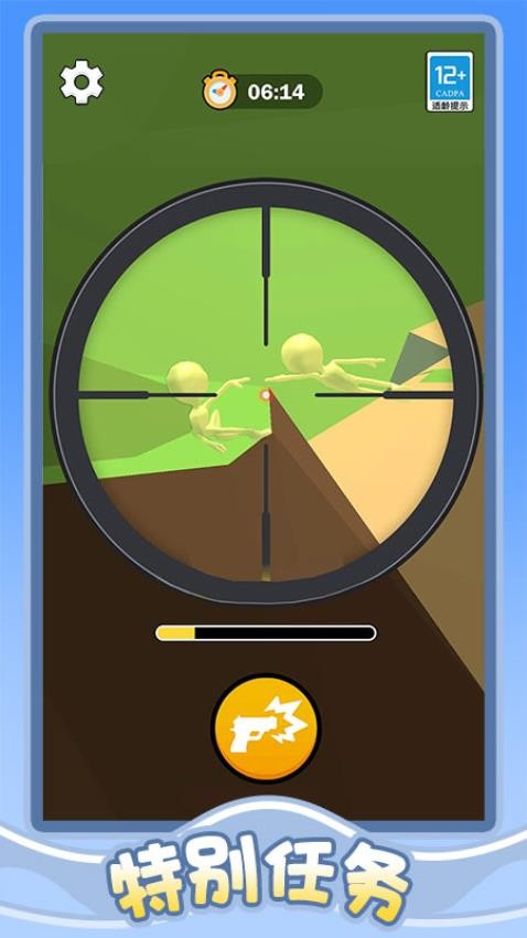 1、点击开始游戏,按住屏幕去瞄准,松开去射击。