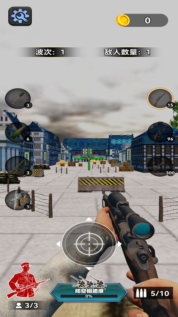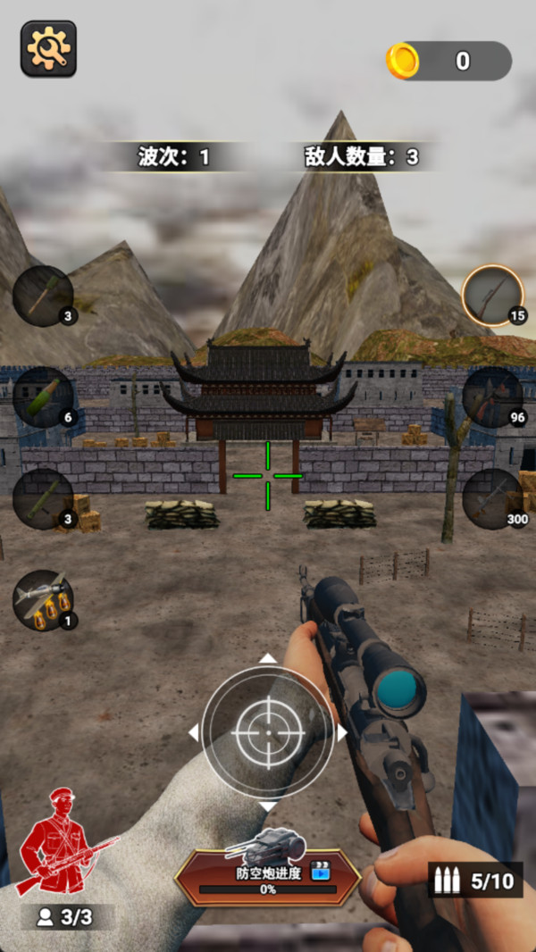 2、通过滑动屏幕调整视角,点击屏幕即可开火,部分关卡中,敌人会从不同方向突袭,需快速反应调整瞄准位置;