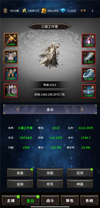 2、游戏核心包含放置玩法,武将可自动进行战斗并为玩家持续产出经验和各类资源。