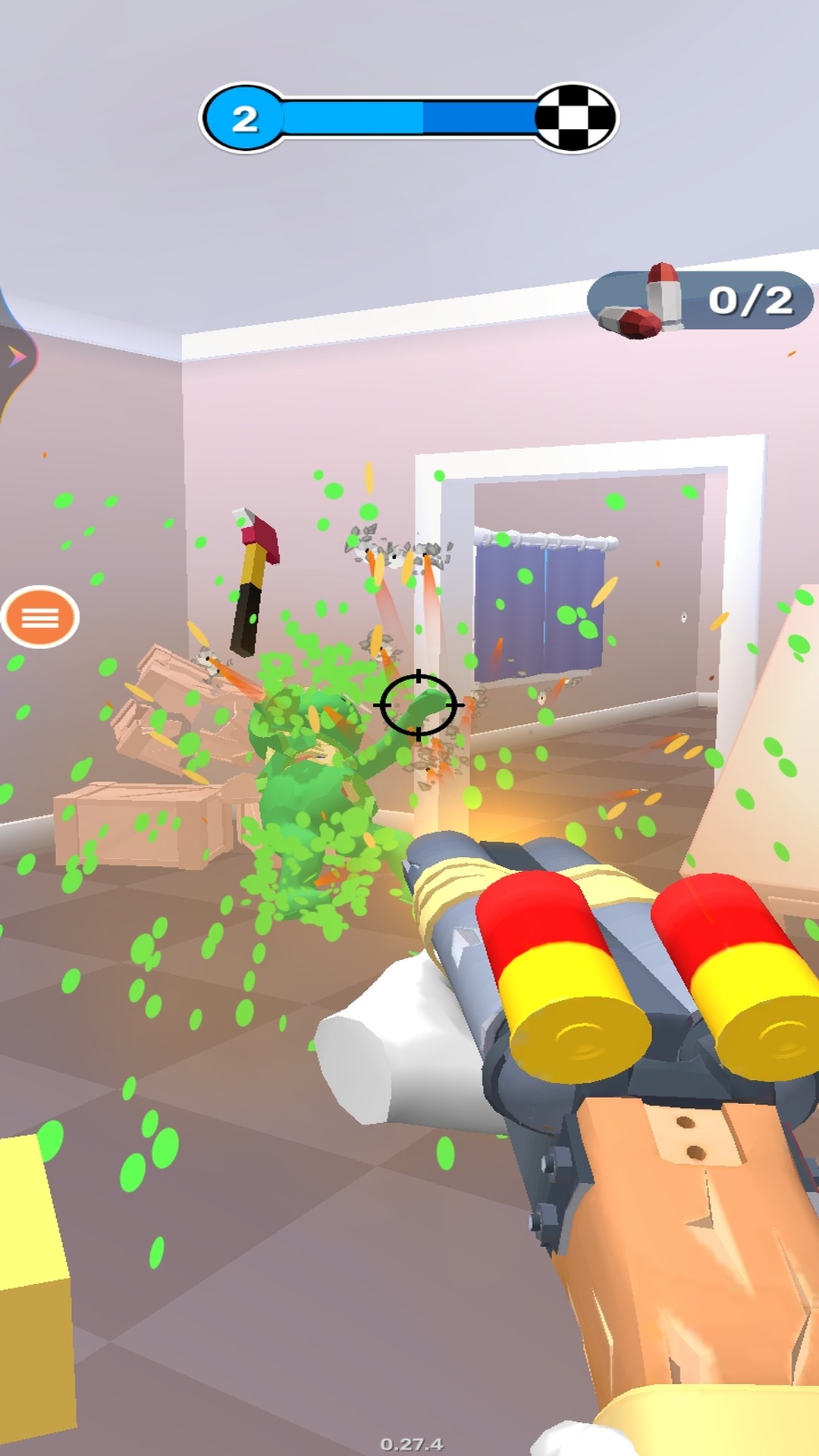 1、进入游戏,第一人称视角拿起武器开始射击,射击房间中的僵尸,精准的进行射击。