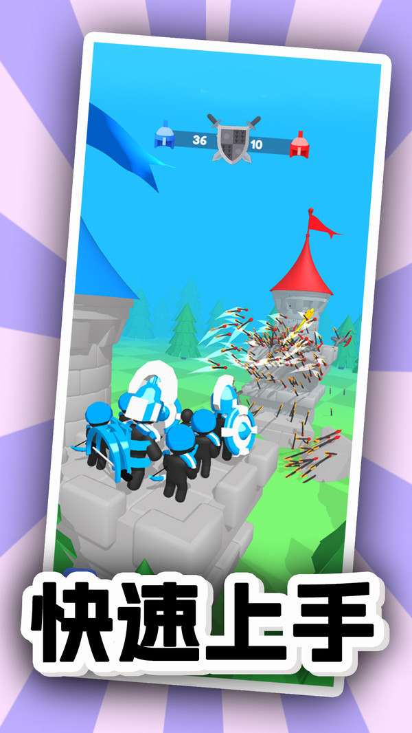 火箭发射是一款融合了策略合并与3D射箭防御的休闲游戏。您将作为城堡的最后防线,立于城墙之上。面对汹涌而来的敌军,您不仅要精准拉弓射箭,更需巧妙运用合并之力。通过招募并合成弓箭手,组建更强大的防御阵列。在激动人心的箭矢对攻中保卫家园,并集结力量,向敌方的城堡发起最终冲锋!挑战每一个关卡敌人,秀出你的射击技术。