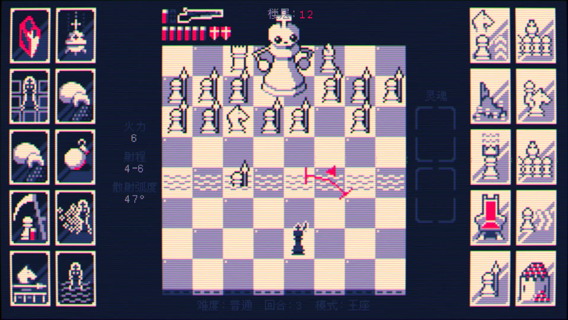 霰弹枪之王最终决战是一款颠覆传统的策略Roguelike游戏,将国际象棋的规则内核与火器暴力美学巧妙融合。玩家不再操控兵、马、象等传统棋子,而是仅凭一把王室霰弹枪在8×8棋盘上对抗敌方完整军队。每回合你可移动并开火,霰弹枪的扇形弹道能同时清除多个敌人,但弹药有限、位置关键。随着关卡推进,随机获得技能模组、弹药强化或棋盘改造道具,在保留象棋走位逻辑的同时,注入高风险高回报的战术抉择与随机成长乐趣。
