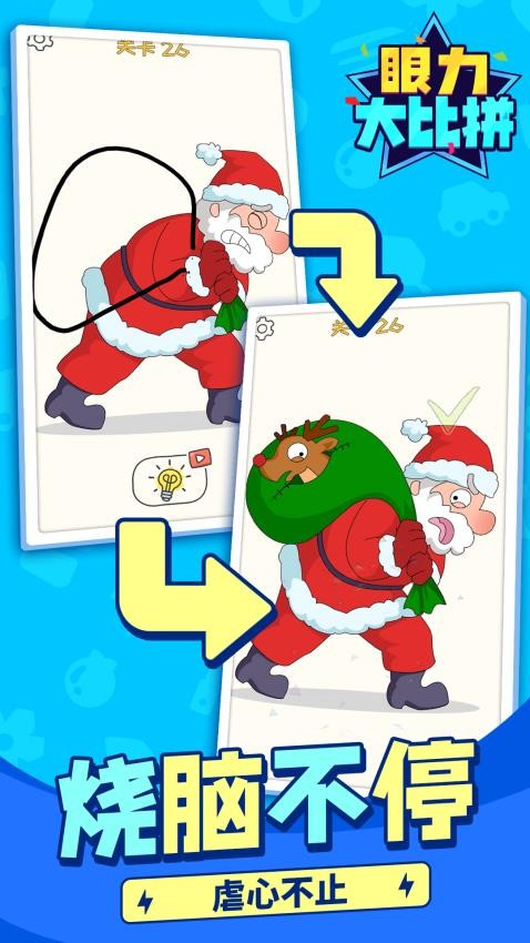 1、每一关都是大家来找茬的升级版,不仅需要找出预设的不同点,挑战玩家的观察力极限。