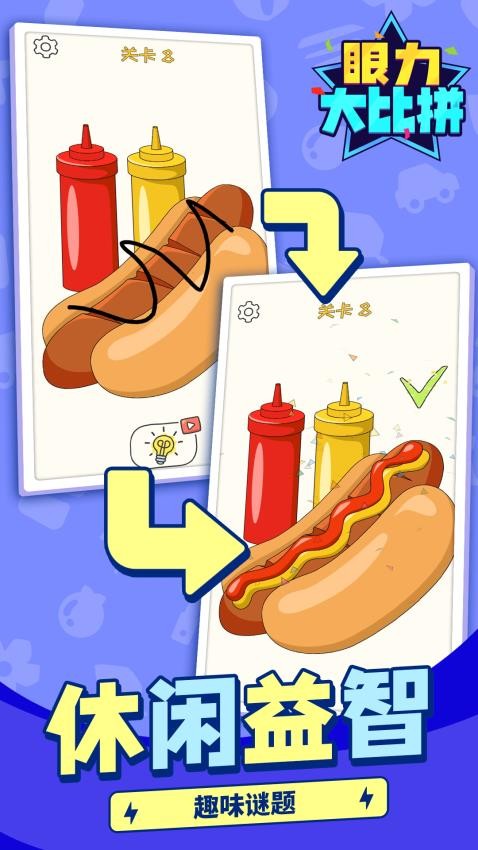 眼力大比拼游戏是一款独具匠心的观察解谜游戏,将找不同与创意绘画完美融合,通过细致对比,找出细微差异,并发现其中一幅画中缺少的关键物体,最终玩家需要亲自执起画笔,在正确的位置描绘出缺失的部分,才能修补画作,揭开谜题,推动剧情发展,整个过程不仅考验眼力,更激发创造力,唯有保持极致的细心观察,才能顺利完成所有艺术修复任务。