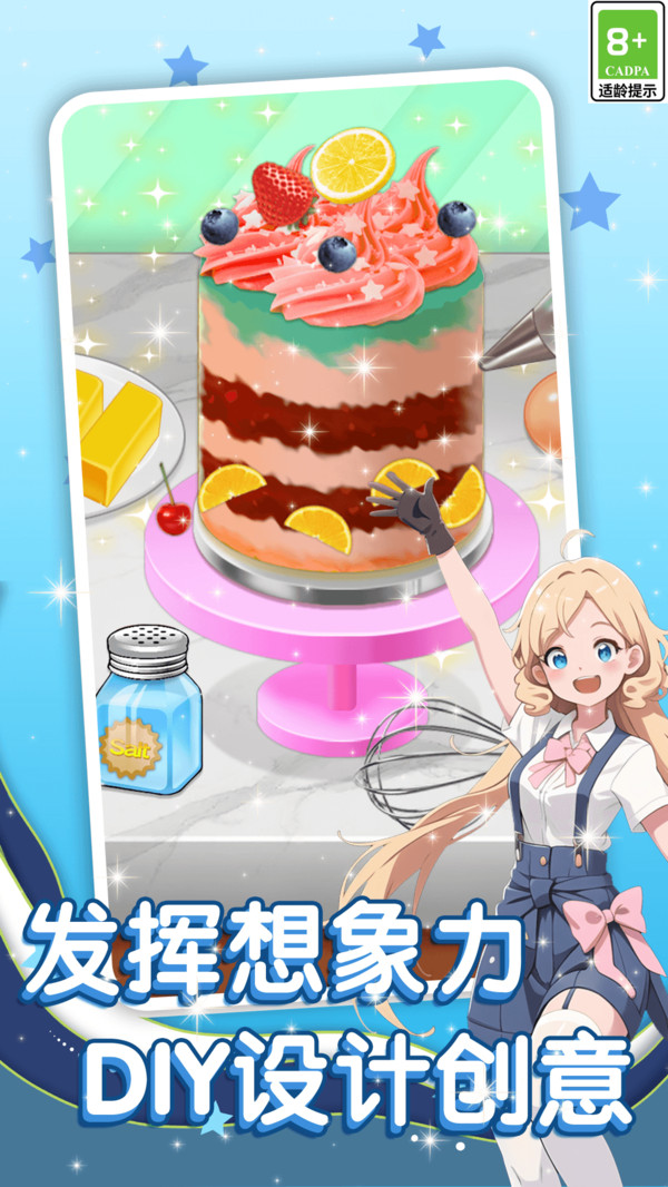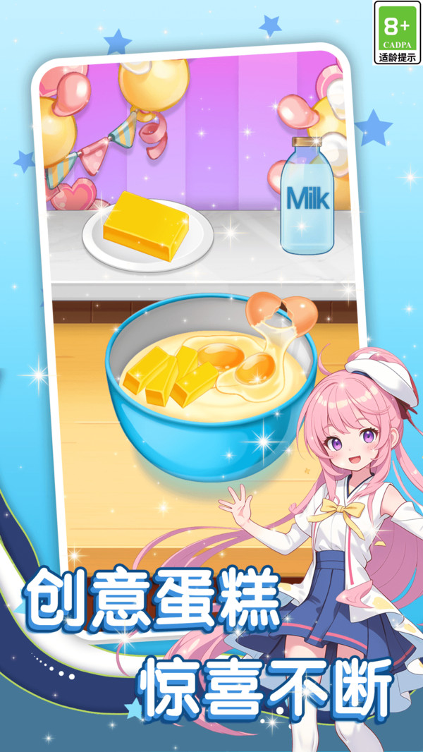 1、画面色彩明亮柔和,蛋糕模型精致诱人,操作反馈流畅,带来极强的视觉满足感。