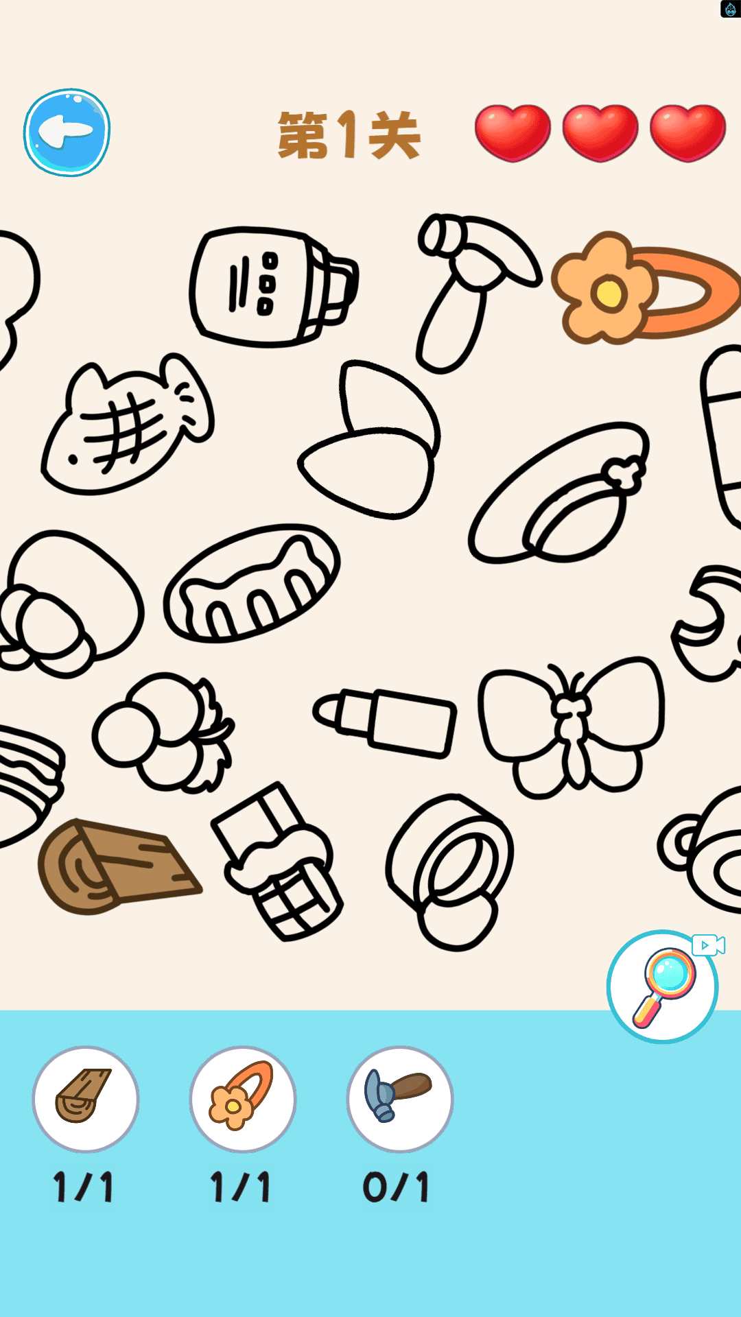 1、进入游戏,从第一关开始,你需要找出下方圈住的物品;
