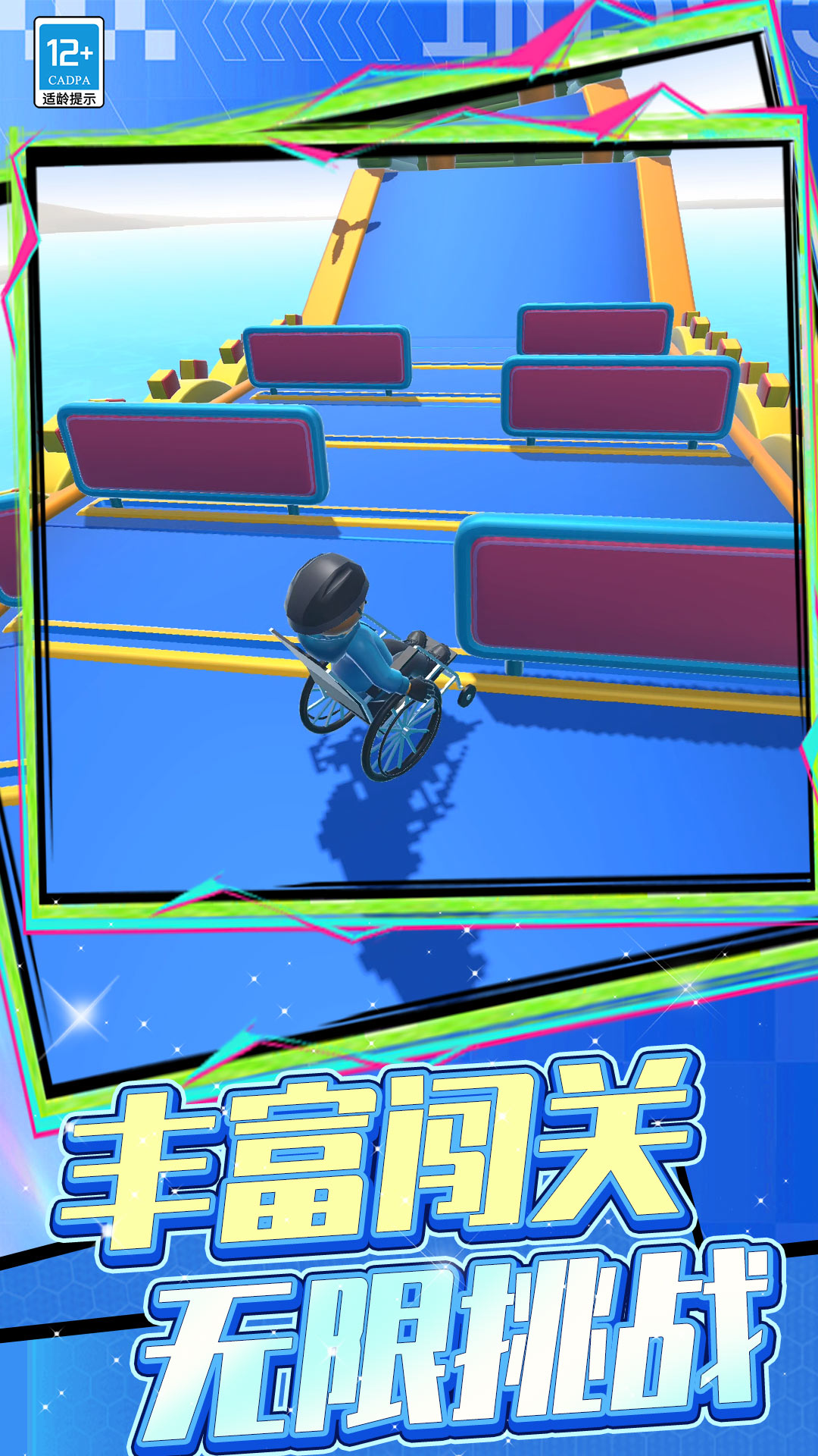 3、完成空中转体、贴墙漂移等高难度动作可积累评分,评分达标解锁隐藏赛道或轮椅皮肤。