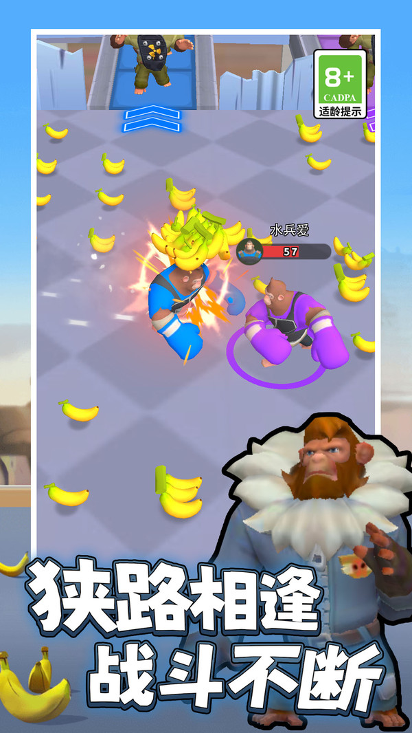 3、玩家在收集香蕉的时候,可以攻击场景中其他对手,注意香蕉数量比他多才行哦。
