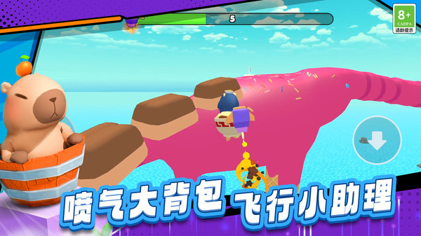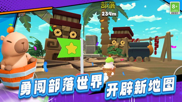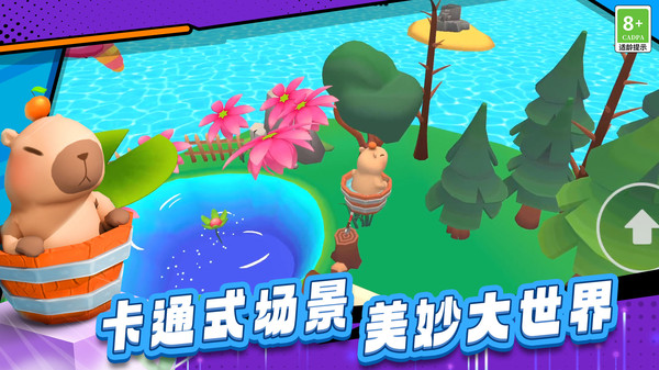 2、玩家将扮演一只动作憨萌的卡皮巴拉。其独特的形象与沉稳的动作设计,为这场高空冒险增添了一份别样的松弛感与亲和力。