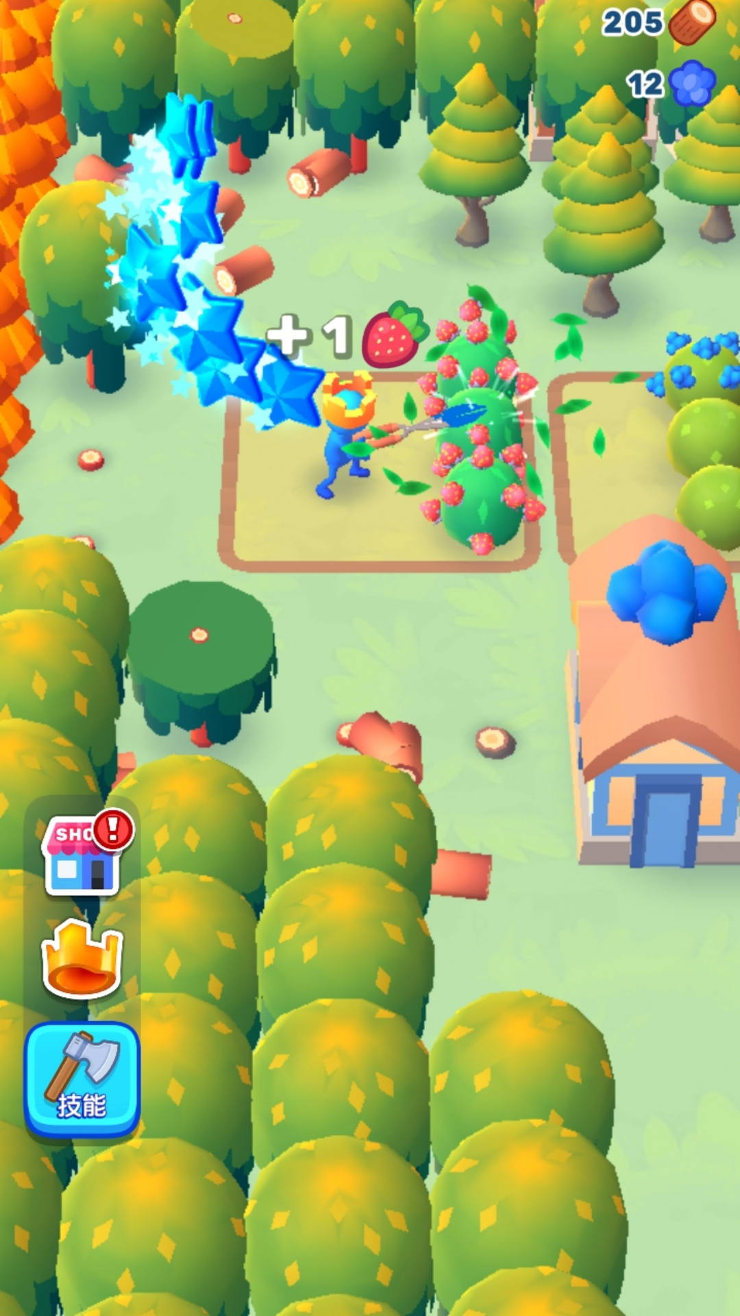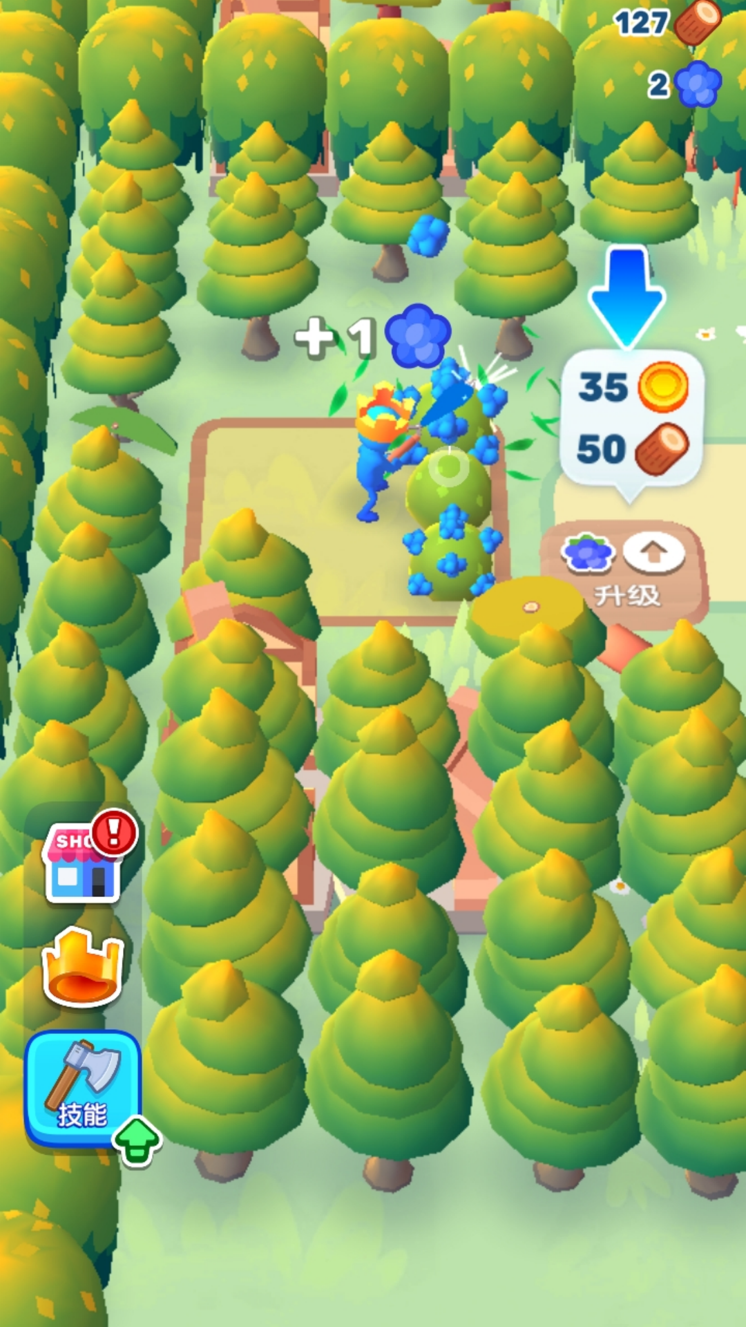 4、收获大量的浆果开始售卖,获取丰富的金币,升级斧头的技能。