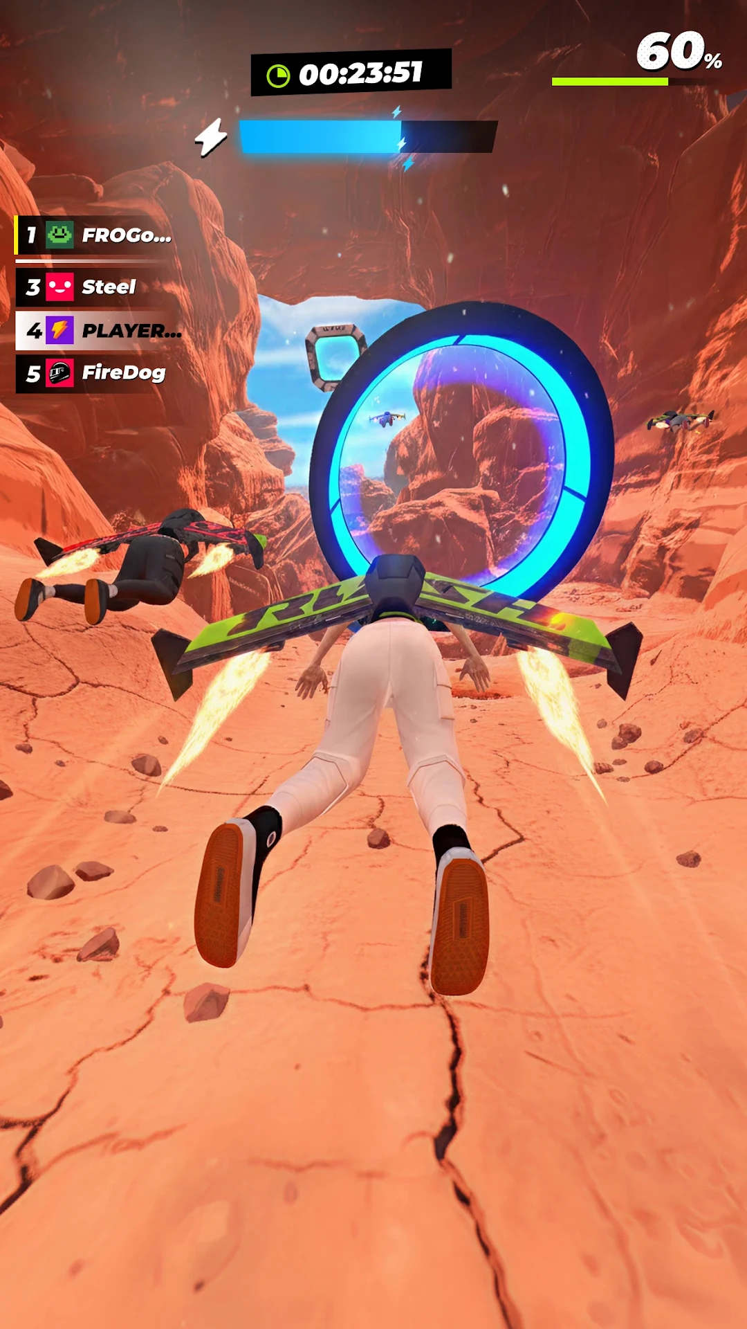 2、利用场景中的加速道具,以及灵活的冲刺运用,率先到达终点获胜。