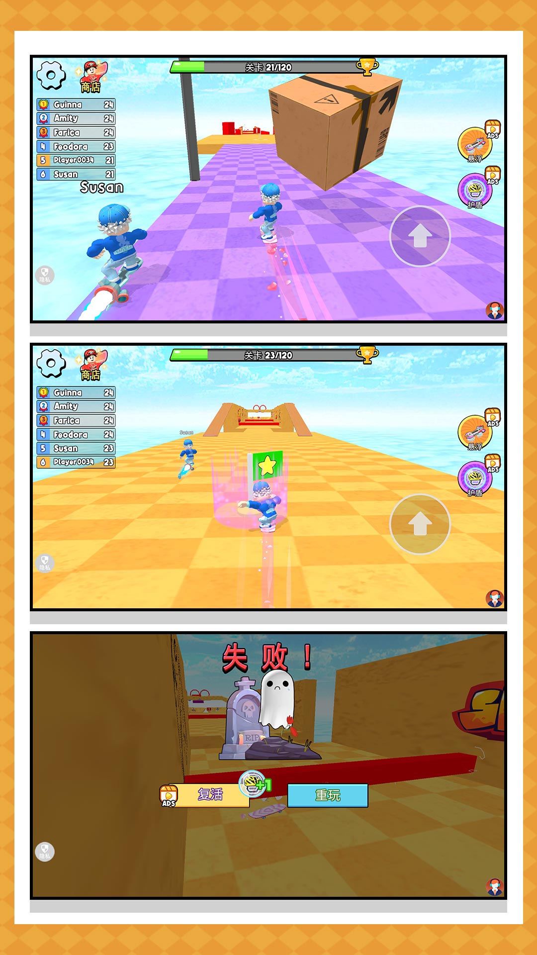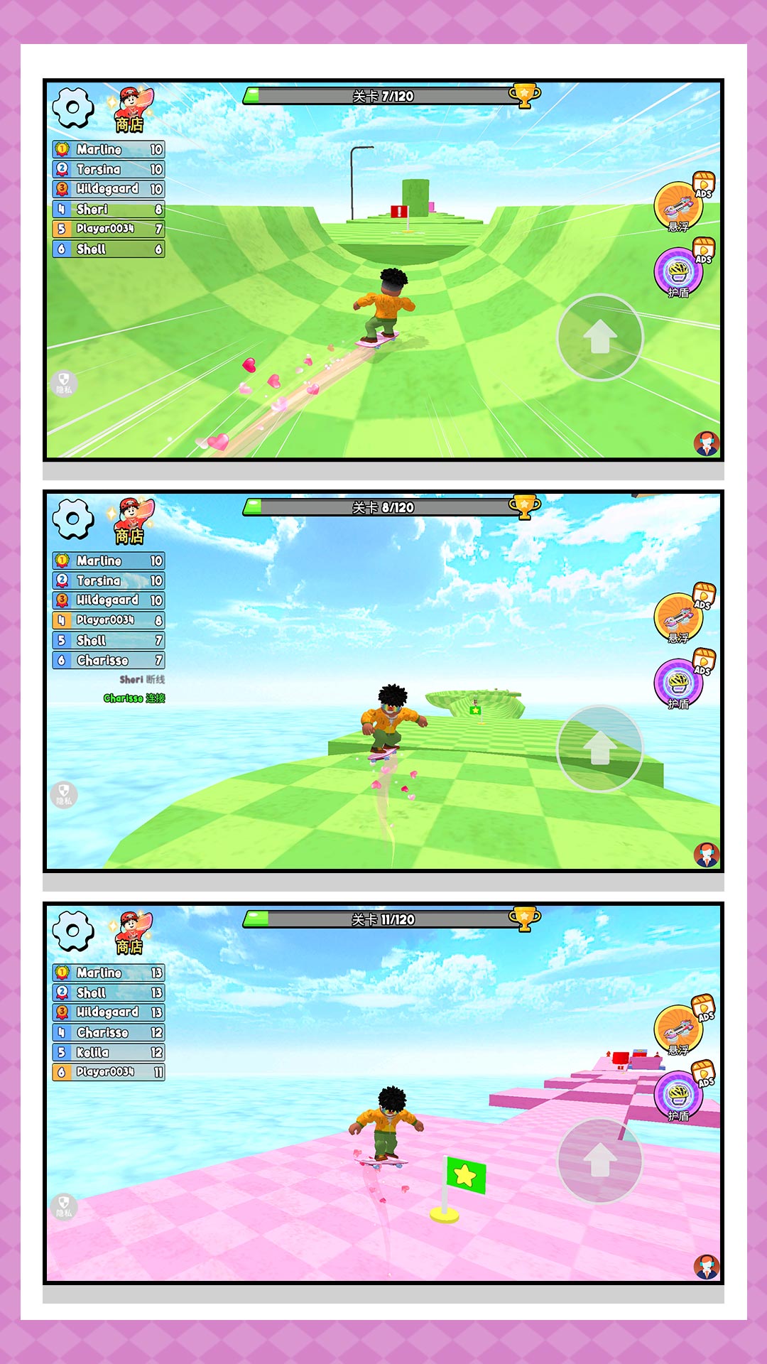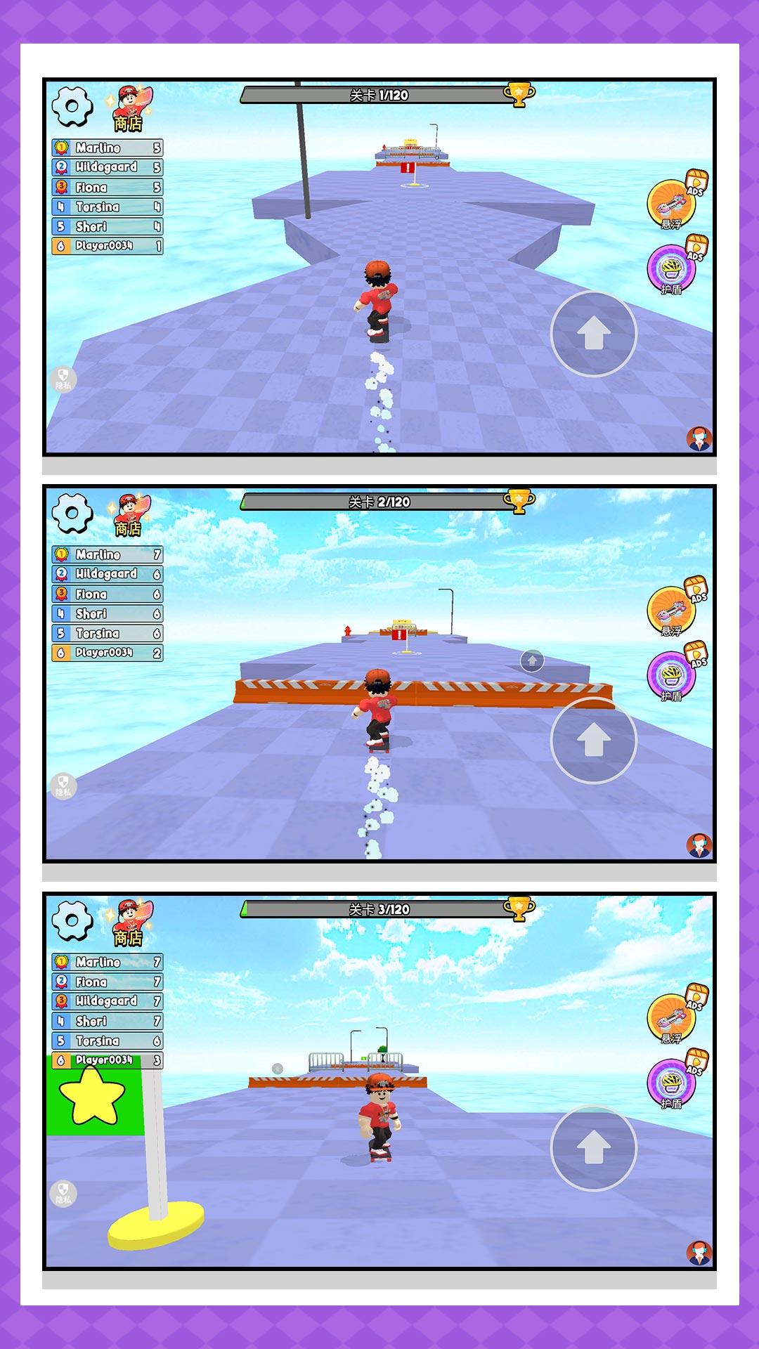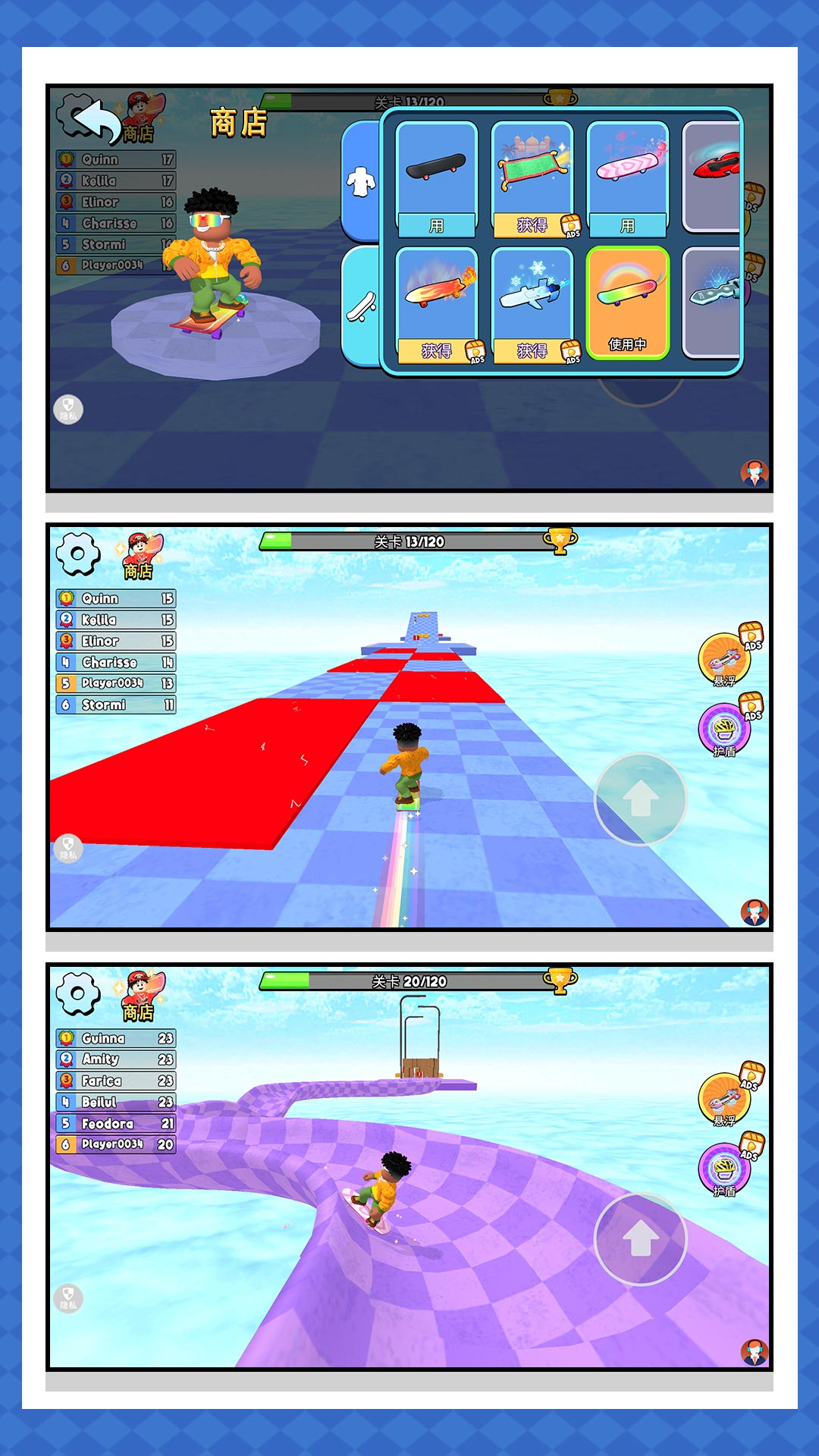 2、极速的移动滑板开始闯关,小心的避开各种障碍物,获取丰富的奖励。