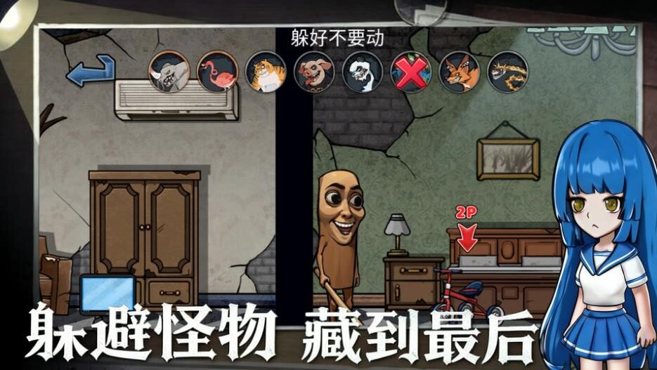 双屏躲猫猫是一款欢乐趣味的躲猫猫游戏,可以双屏一起体验,控制两个不同的角色,找到合适的地方隐藏自己的身形,千万不要被山海经怪兽给抓住了,不然就算是挑战失败,还有很多道具可以使用,帮助你更好的完成一系列挑战,诸多有趣的过程,值得好好去体验,一切都是充满了愉悦的滋味,让心情变得更加开心起来,快来和其他玩家一起尝试吧!