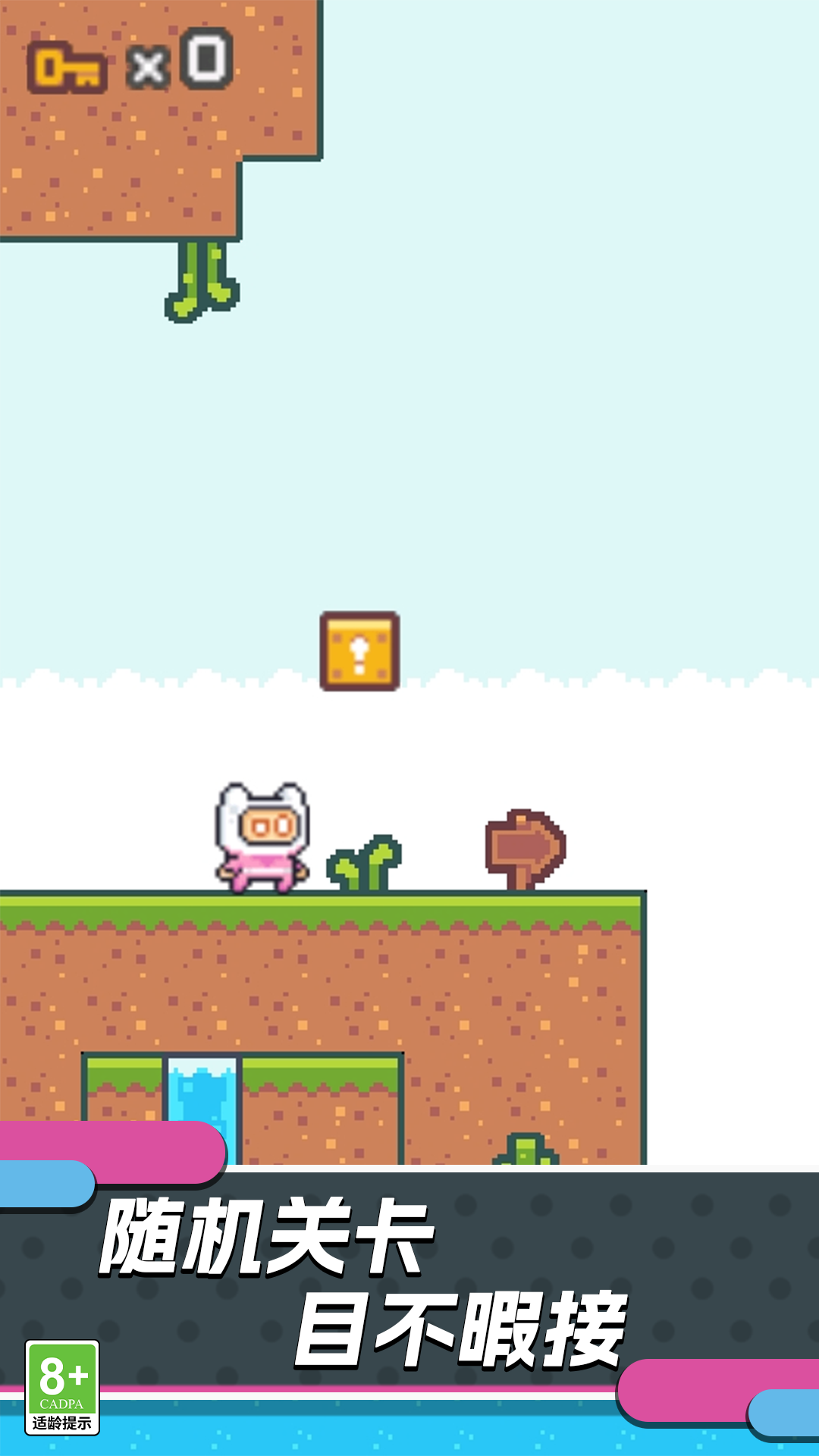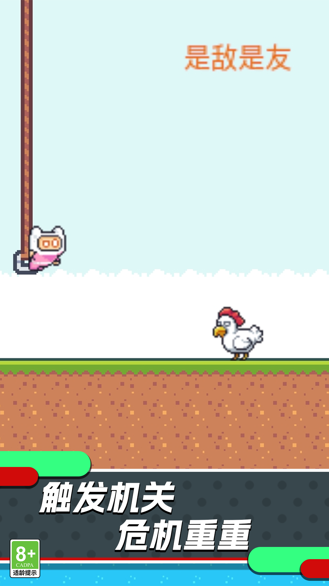 2、 通过简单的滑屏或点击控制勇者跳跃,长按可进行更高更远的跳跃,以越过沟壑或低矮障碍。