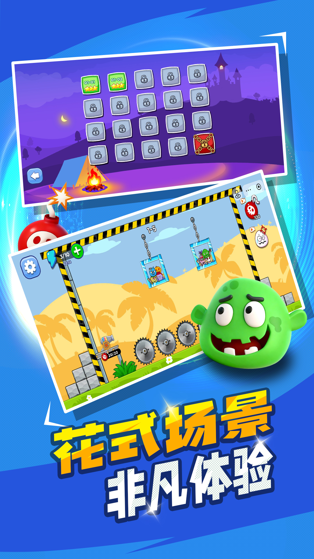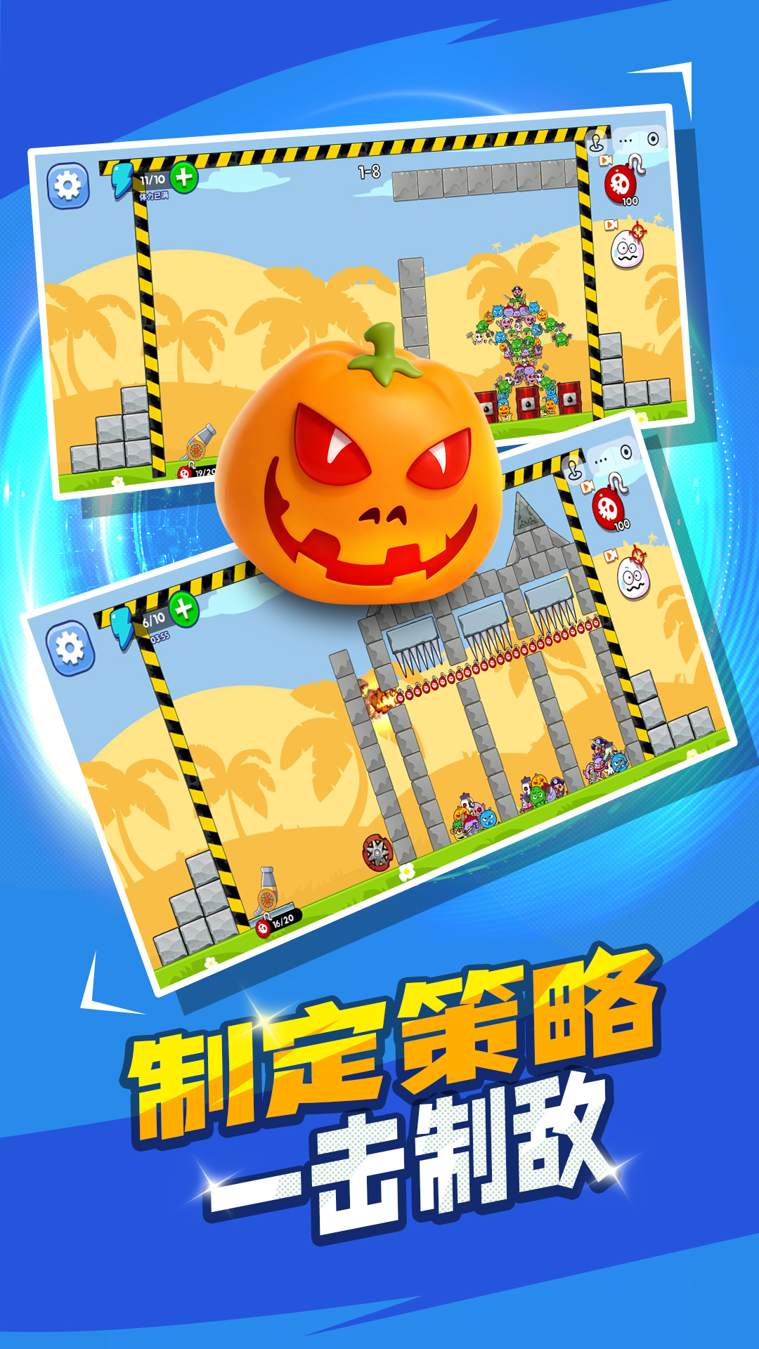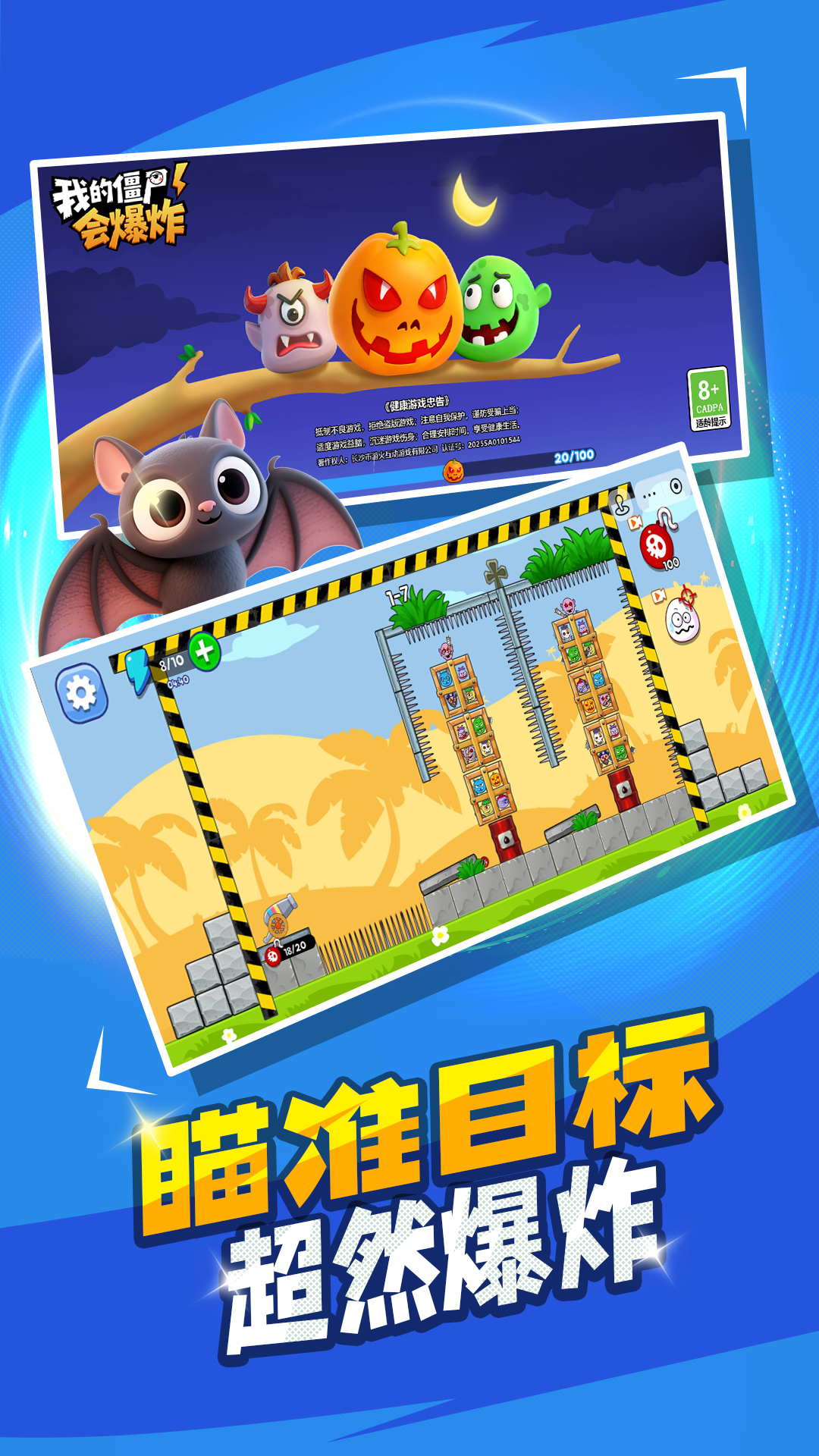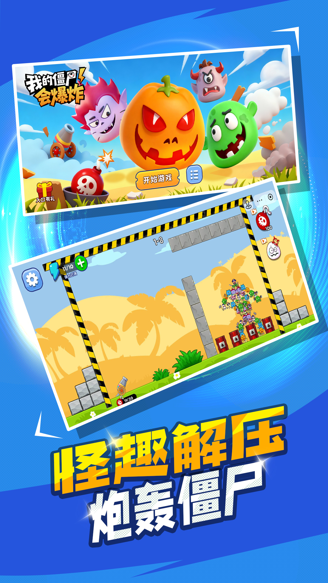 我的僵尸会爆炸是一款操控炮塔尽情轰炸僵尸的闯关冒险游戏,游戏采用2D竖版欧美卡通画风,僵尸设计摒弃恐怖元素,转而采用圆润可爱的Q版形象,如篮球僵尸、绷带僵尸等。爆炸效果则通过动态粒子特效呈现,僵尸被击中时会产生火焰、冰霜或电光四溅的视觉反馈,配合像素级破坏场景,营造出暴力美学与幽默感并存的独特氛围。