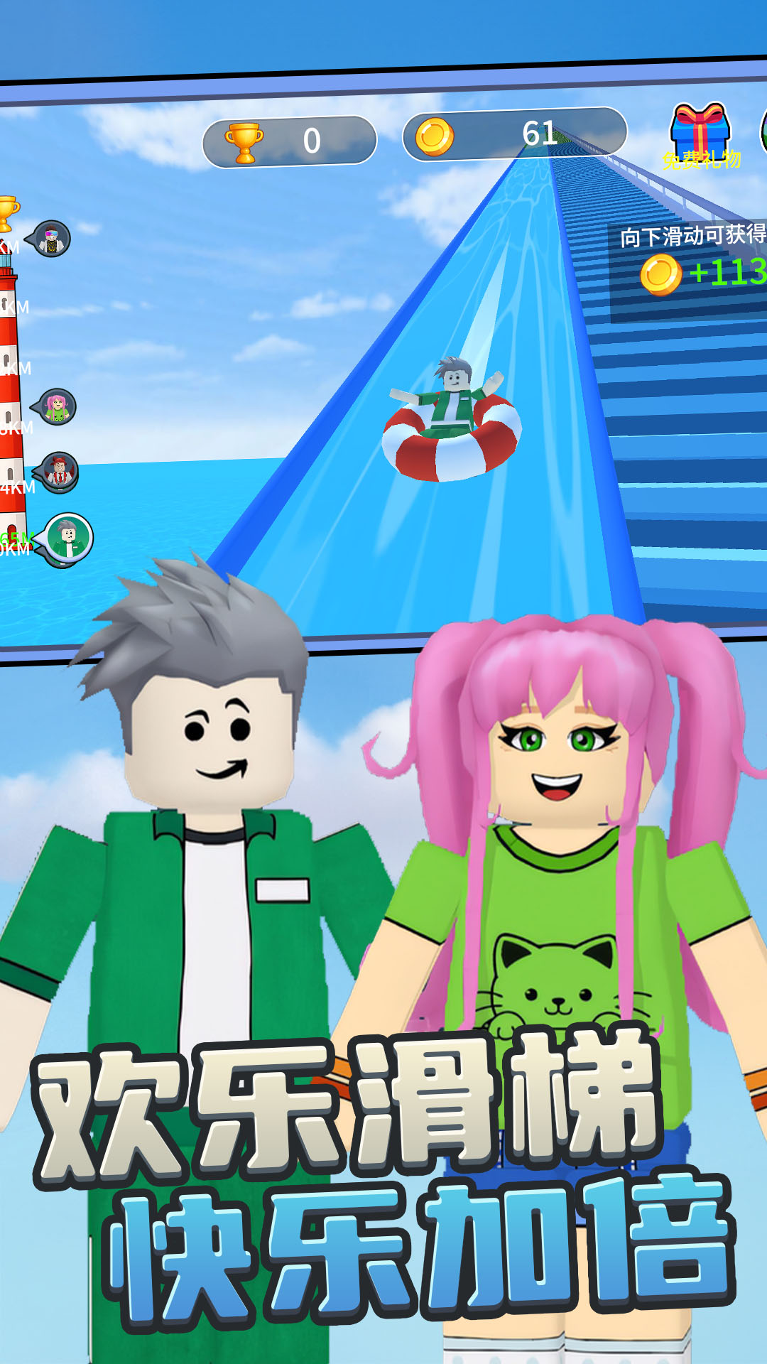 3、滑梯中分布大量金币和道具,完成关卡挑战可解锁成就徽章,全球排行榜则鼓励玩家竞争最短通关时间或最高分数。