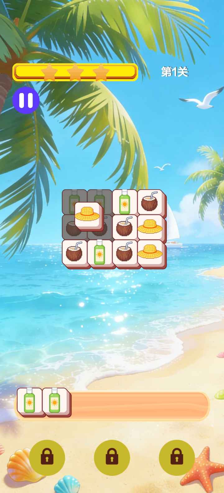 1、进入游戏,延续传统的三消玩法,点击相同的方块开始消除,不能超过下面的方框,完美消除。