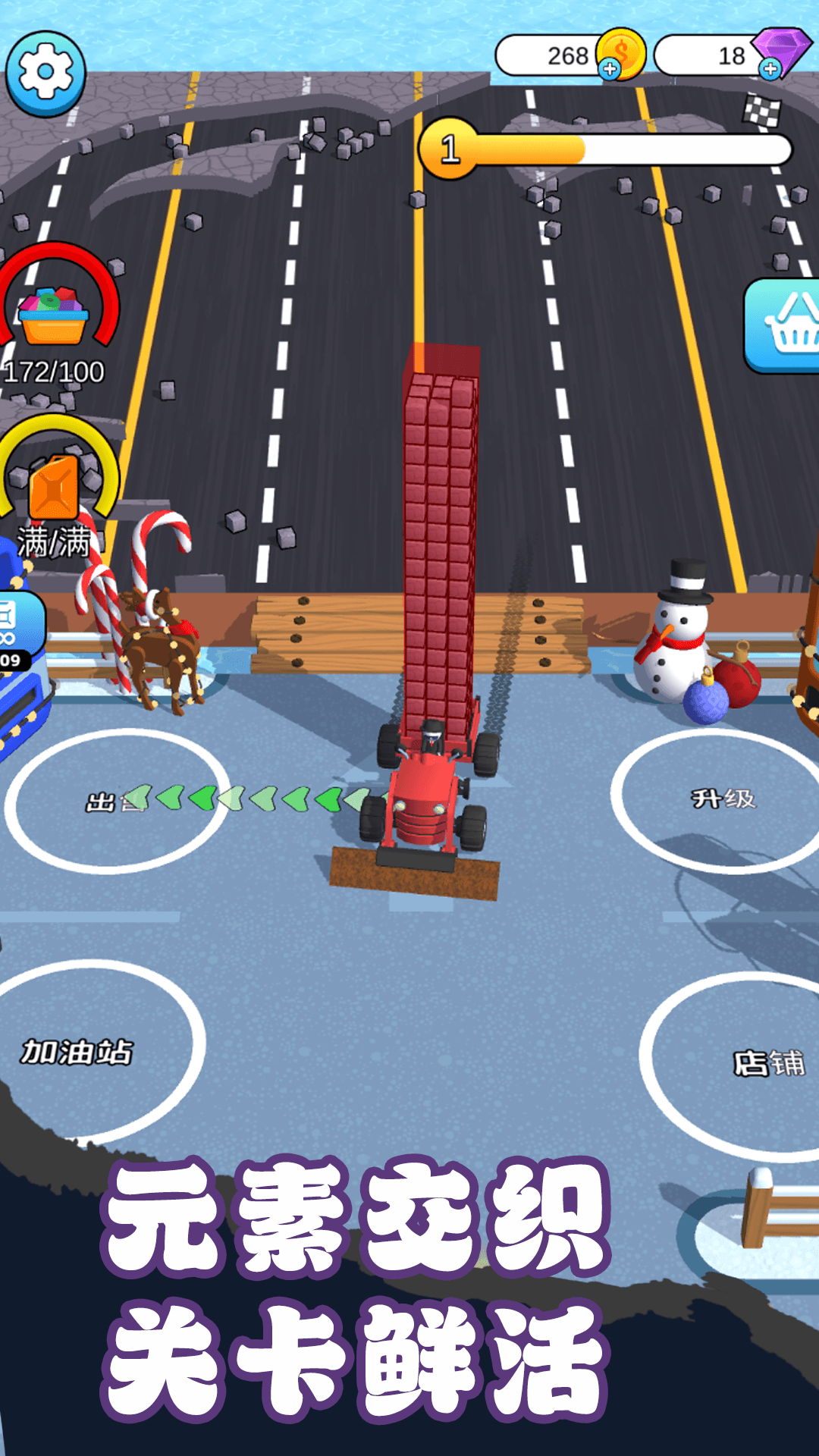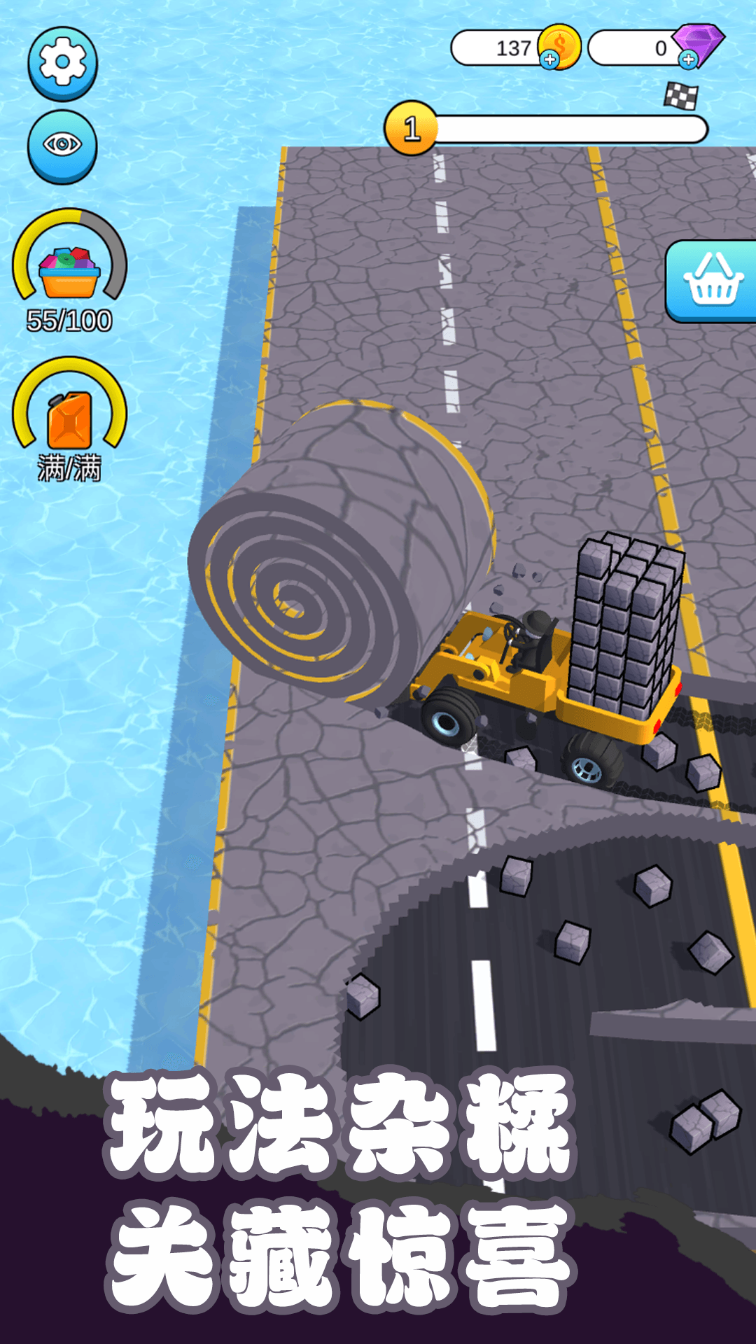 2、继续的驾驶推土机开始移动,灵活的转弯收集丰富的砖块,积累大量的金币升级推土机。