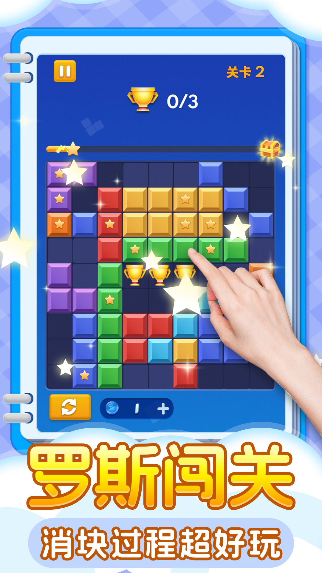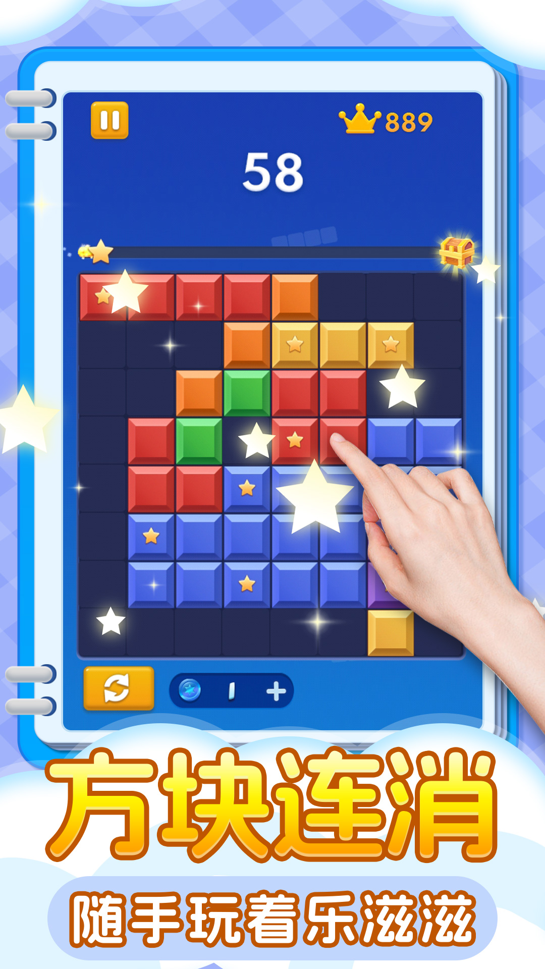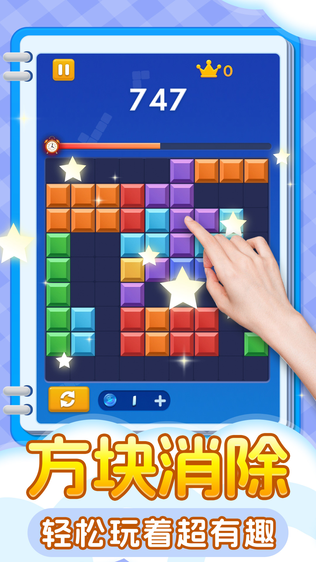 方块炫酷消除是一款趣味十足的方块消除游戏,点击放置适合的方块开始消除,不断的消除闯关积累分数开启新的挑战赛,摒弃了所有复杂规则,回归最本真、最直接的匹配快感,并用极致华丽的反馈将其包装成一场持续不断的感官盛宴,让你在轻松愉悦中,体验停不下来的解压魔力,游戏难度逐步的提升,点击安置不同的方块快速的消除快速的通关。