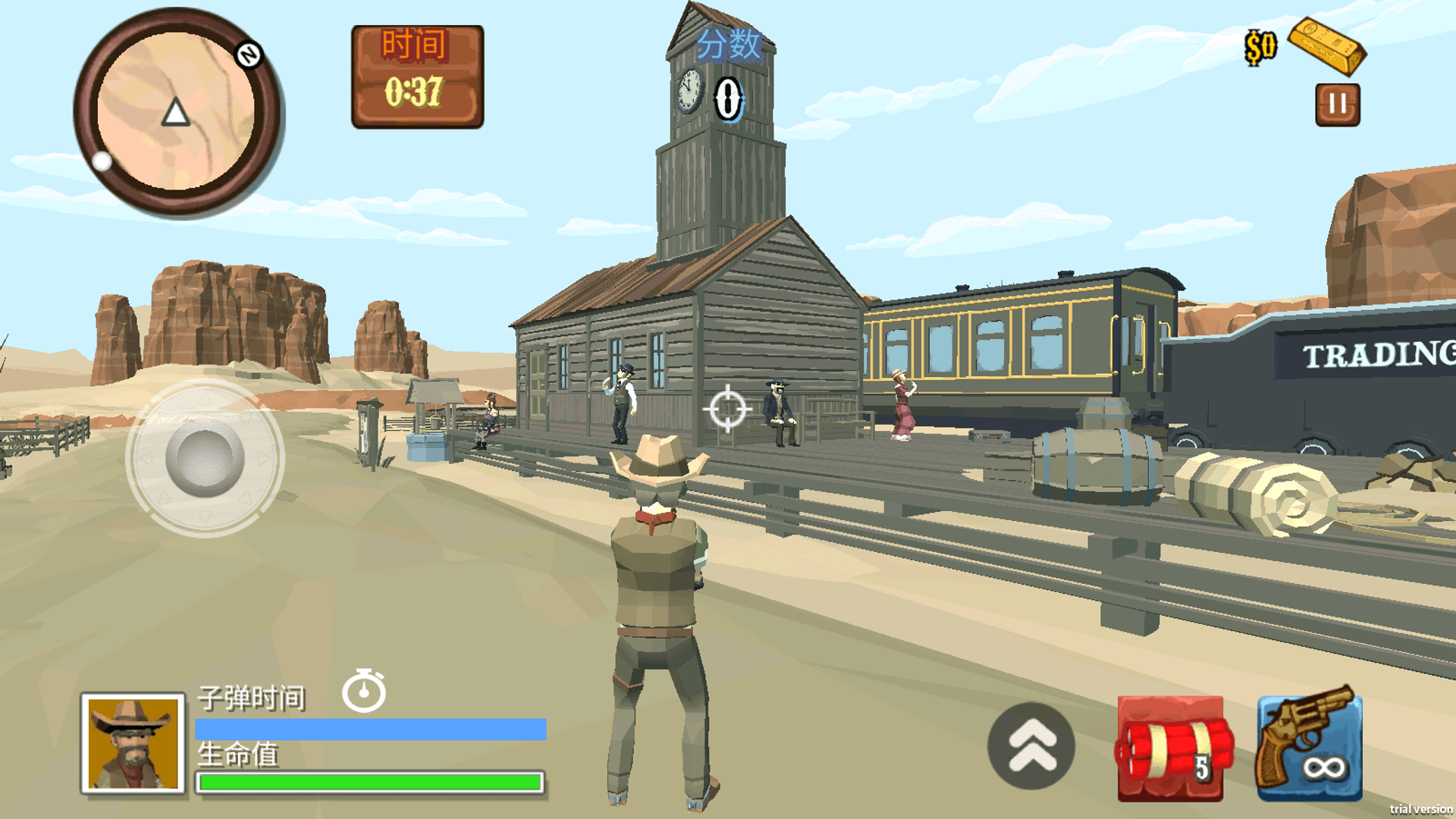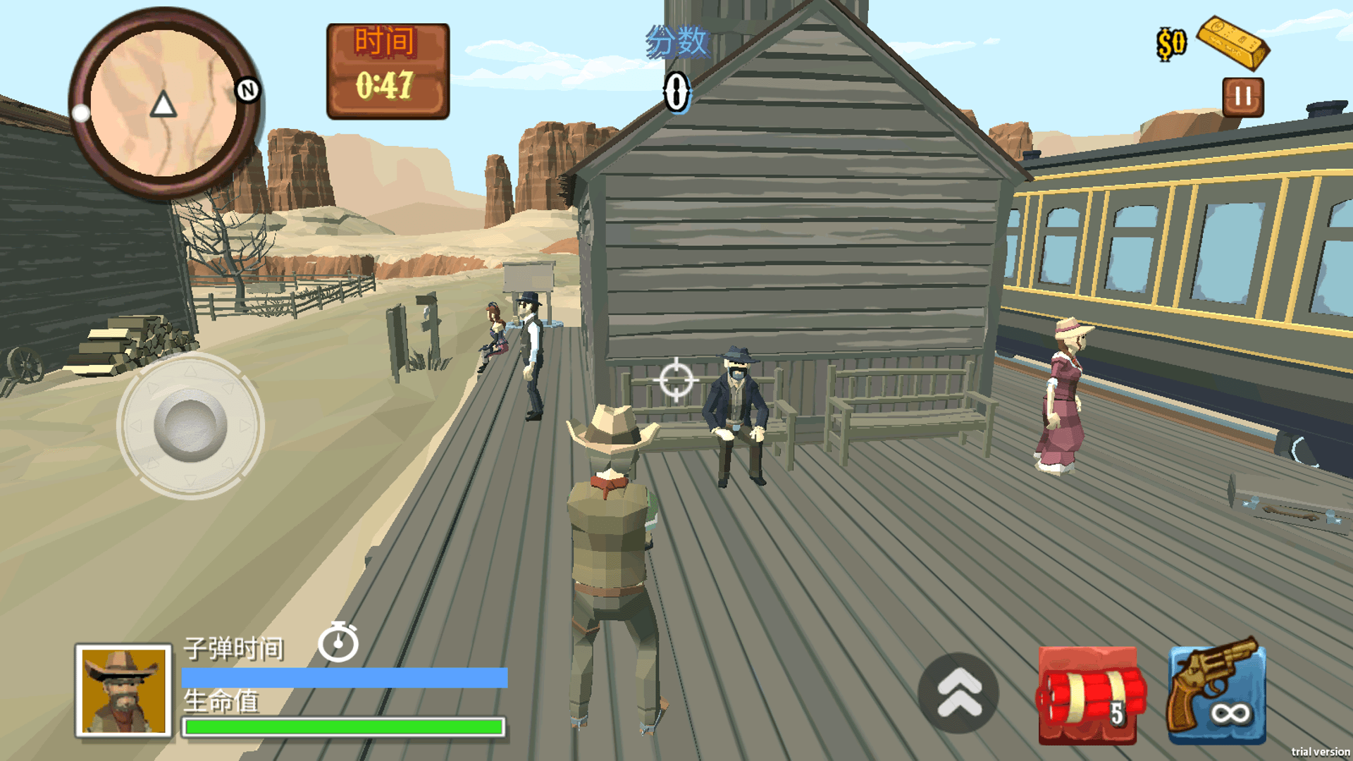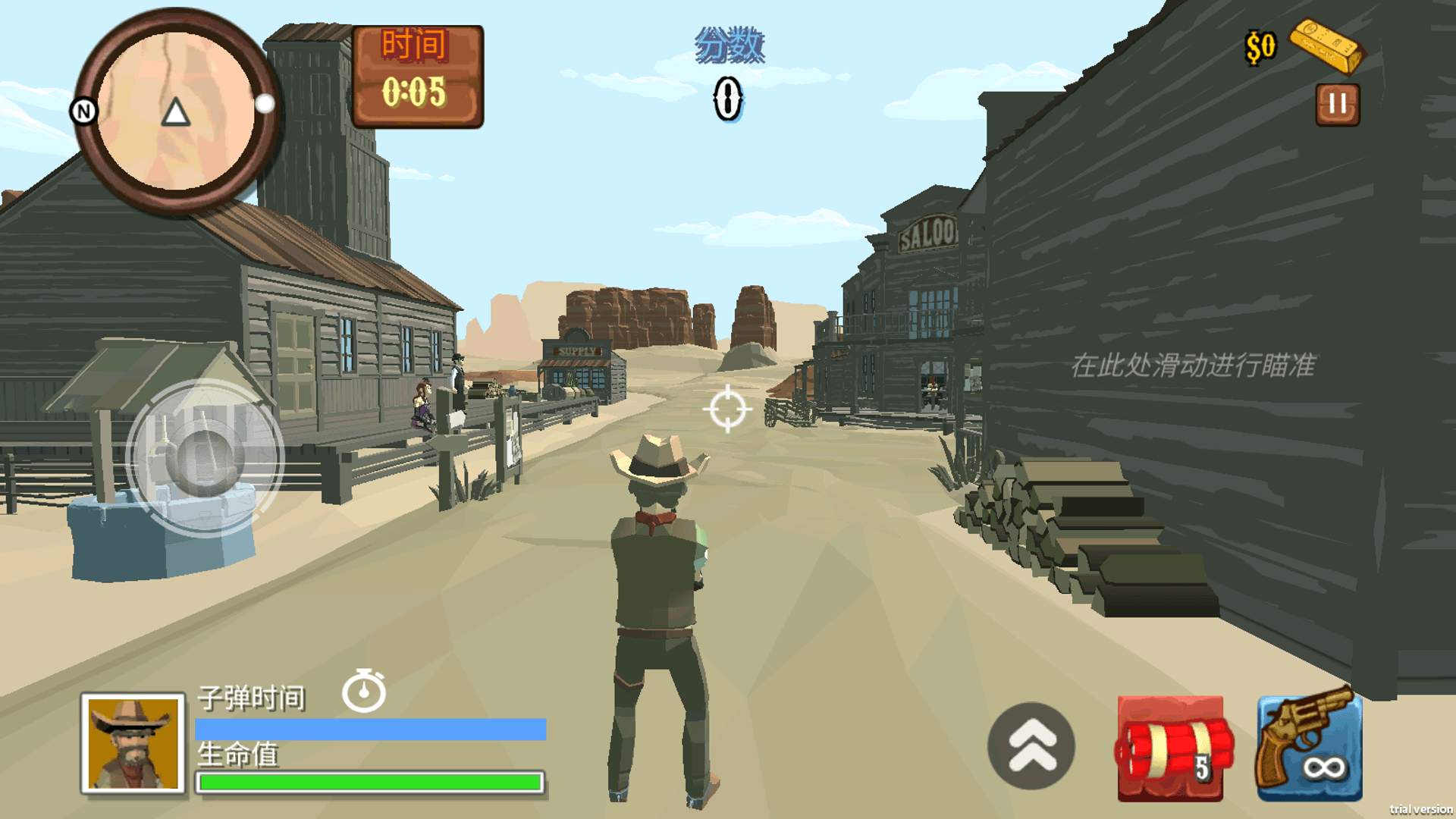 2、拿起武器开始射击,射击隐藏的强盗,获取丰富的奖励,寻找隐藏的战利品。