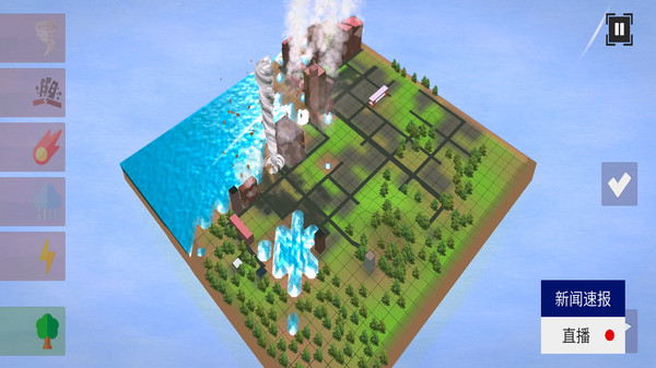 3、通过完成关卡目标来推进进程,并获得资源用于永久升级自然能力的强度、范围或解锁全新灾害类型。