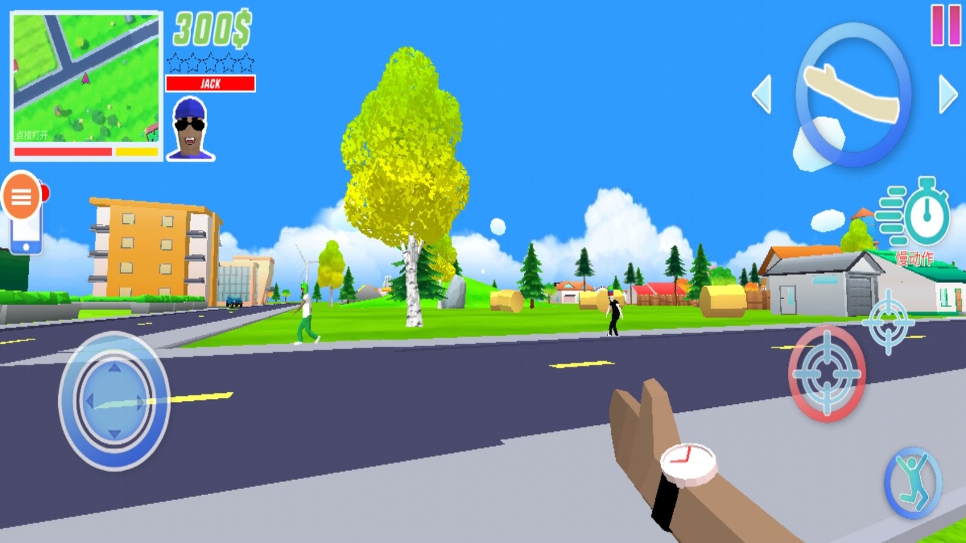 2、驾驶车辆在城市中自由驰骋,车辆行驶需要消耗燃油,左侧控制方向,右侧控制油门刹车。