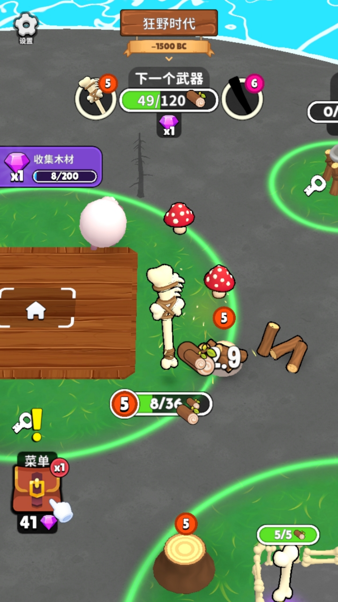 2、通过不懈地收集骨头、木材等珍贵资源,解锁并升级骨镐等基础工具,迎接更大的挑战。