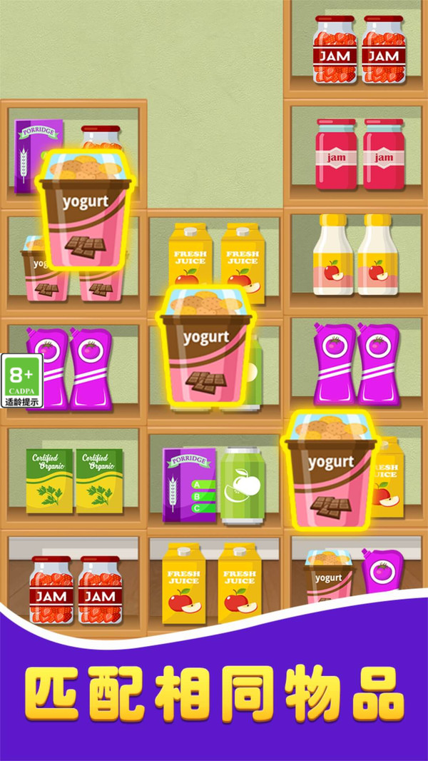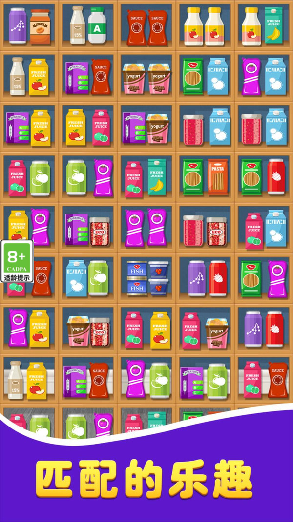 你的货柜来了是一款消除货柜上的物品的经典三消闯关游戏,玩家需在货架上找到三个相同物品,将其移动至同一格子或相邻位置完成消除,清空货架即可通关。货架容量有限,需合理规划物品摆放顺序,避免因空间不足导致卡关。例如,后排物品被遮挡时,需先消除前排障碍物。趣味的消除挑战,轻松的点击方式,带来无限欢乐。