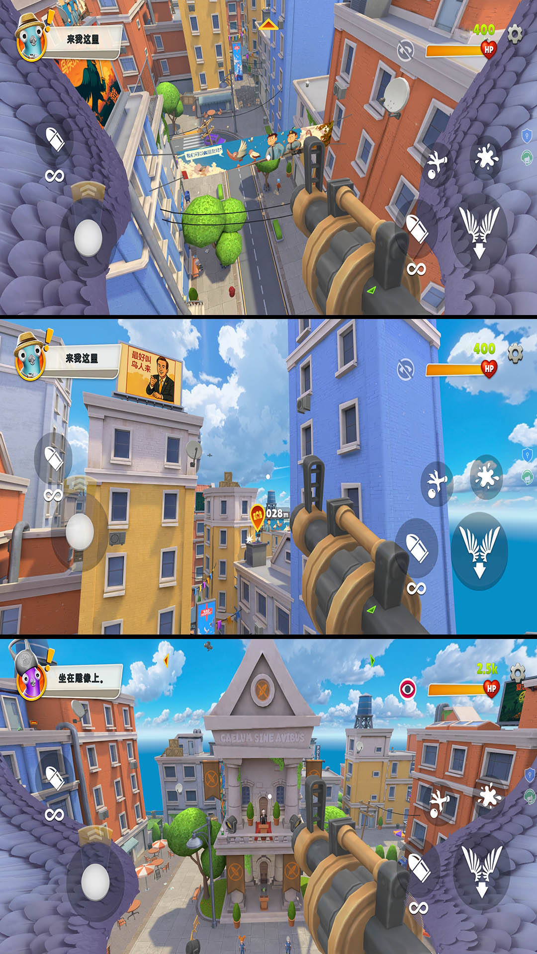 1、通过触控屏幕灵活操控小鸟飞行与爬升,寻找最佳攻击角度和资源点。