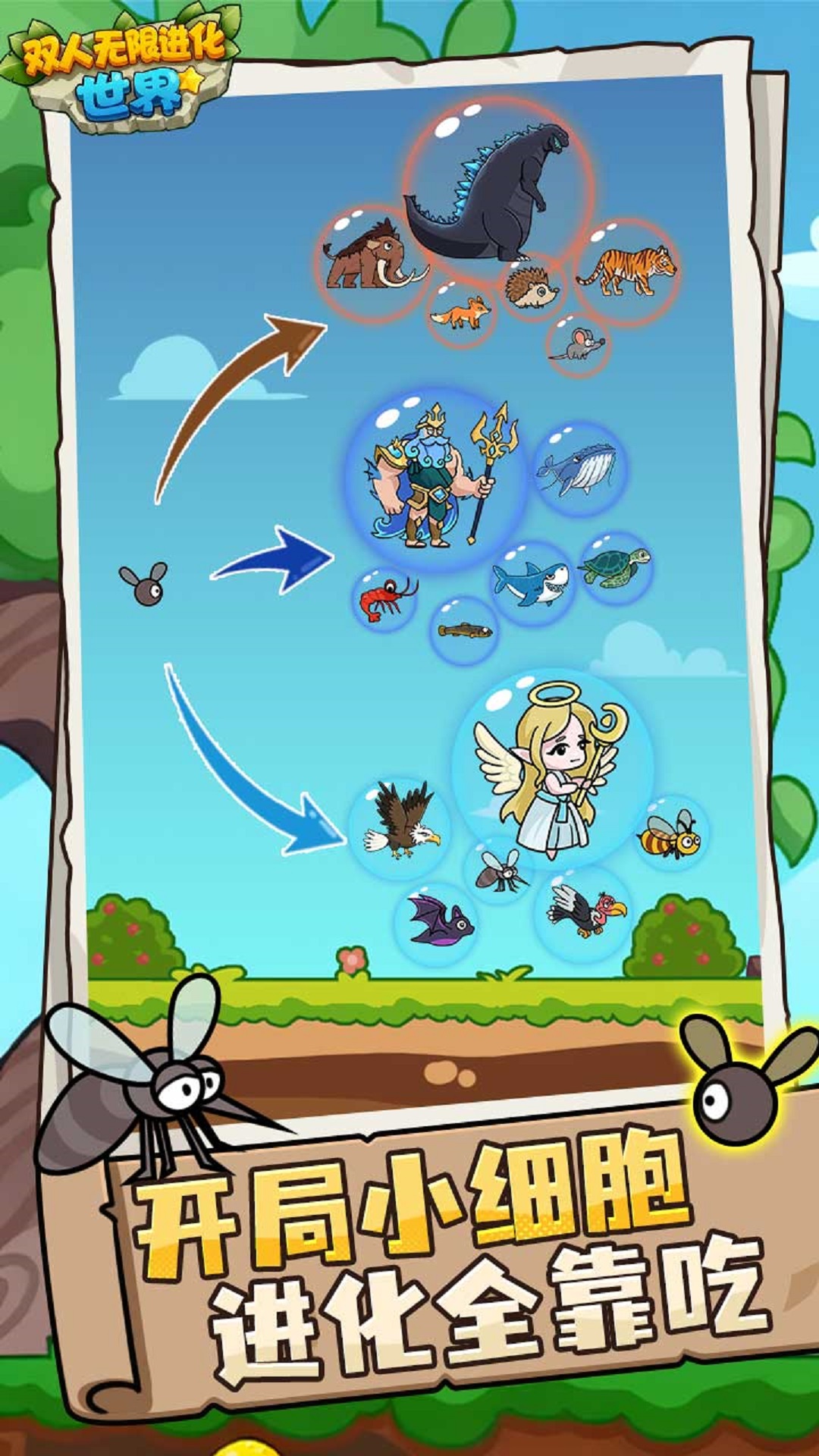 双人无限进化世界是一款主打生物自由杂交与无限进化的开放世界冒险游戏。在这里,你将与伙伴共同踏入一片生命规则由你书写的奇异大陆。游戏的核心乐趣在于“吞噬”与“融合”,你们遇到的每一种动植物不仅是资源,更是进化的基石。你可以让猛犸象与蒲公英杂交,创造出能随风播种的绒毛巨兽;也可以让剑齿虎与仙人掌结合,获得披甲带刺的荒漠王者。每一次大胆的尝试都会催生独一无二的全新物种,并反馈到你们自身的生存与战斗能力上。这个世界没有固定的进化路线,唯有通过不断探索、吞噬与合成,才能打造出专属于你们的终极生命形态,应对来自环境与竞争者的重重挑战。
