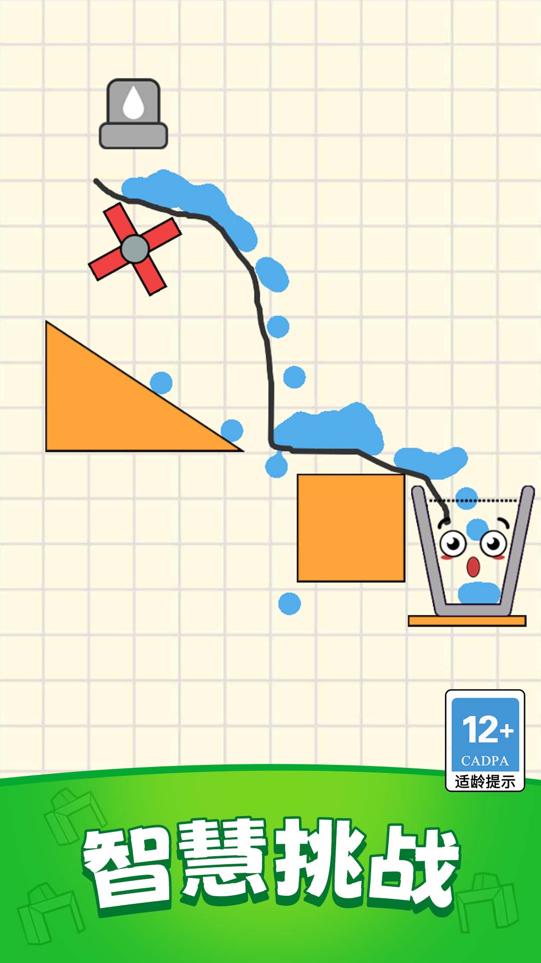 2、单指滑动即可完成划线,零门槛上手,但通关需巧思,通关后可回放液体流动过程,完成更多的任务;