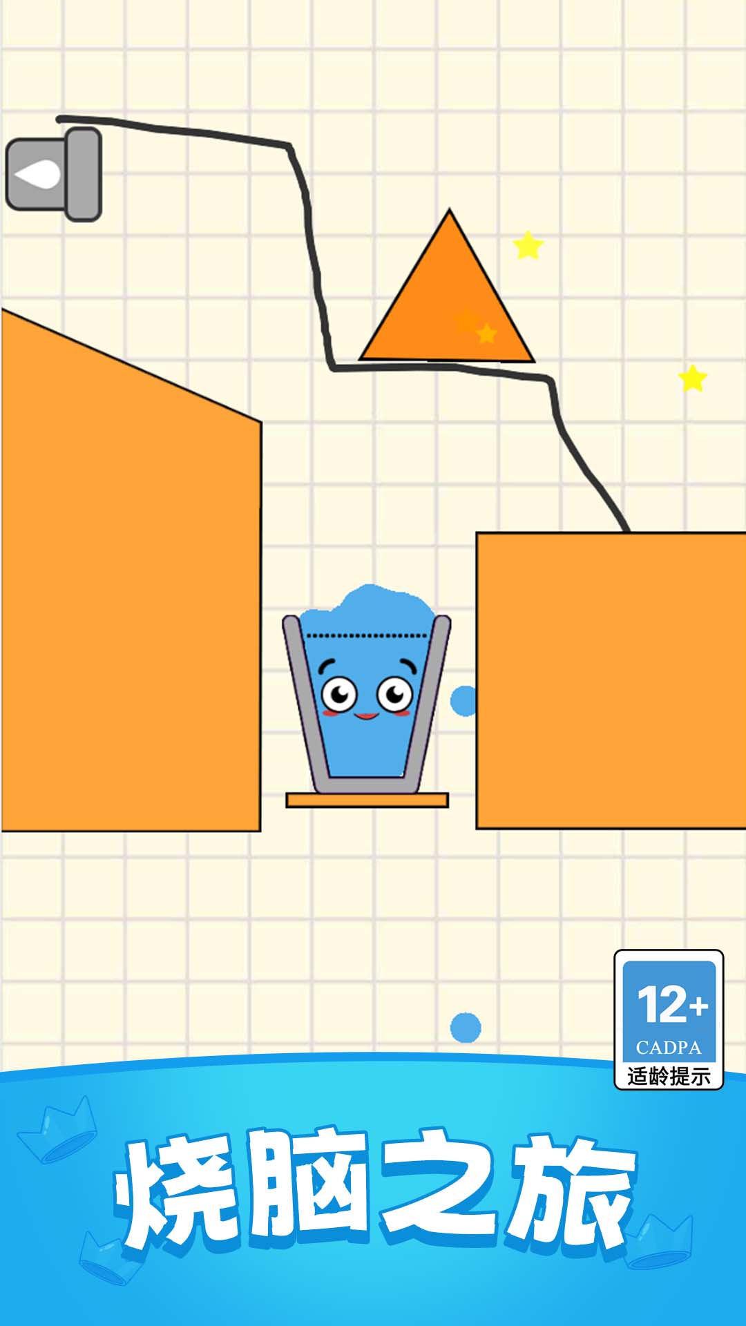 划线挡漏杯是一款画线倒水,顺利流入杯中的休闲闯关游戏,基于真实物理引擎,液体流动受重力、惯性、速度影响,玩家需精准计算线条角度与结构,才能有效阻挡漏洞。手指轻触屏幕绘制线条,无固定形状限制,直线、曲线、折线、封闭图形等等,发挥想象力,用最简方案解决难题,让水杯倒满,即可完成挑战任务。