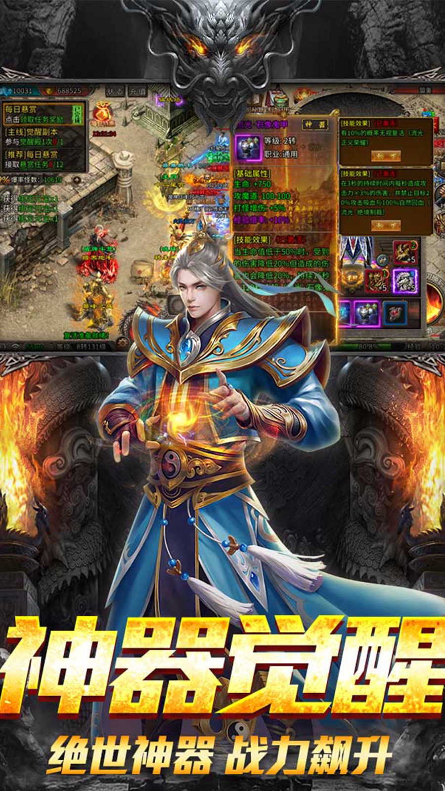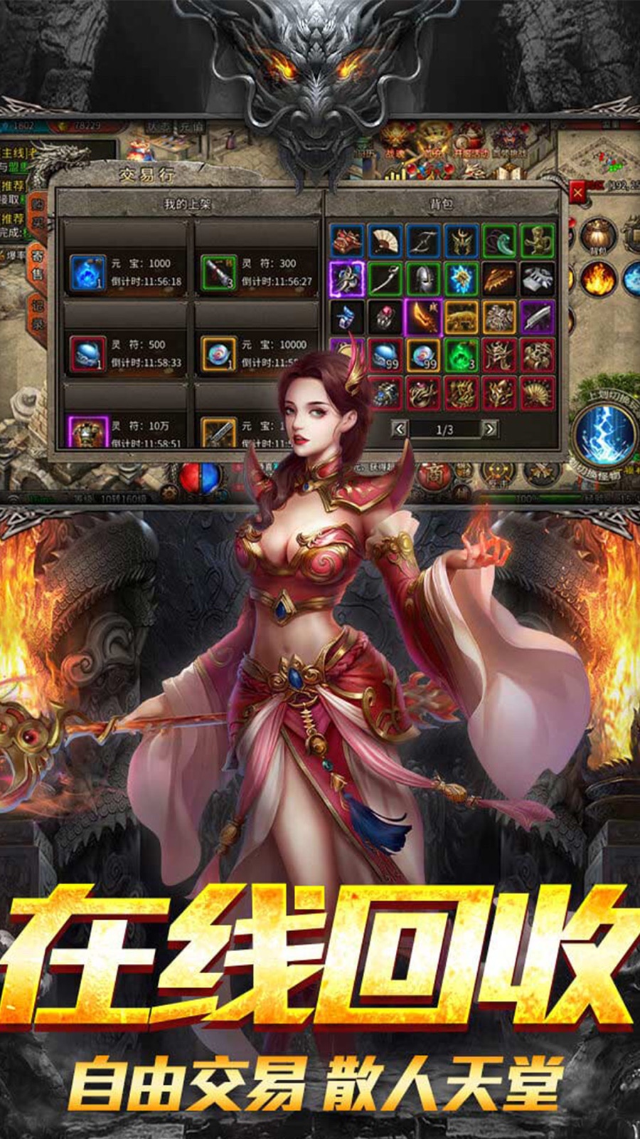 1、游戏高度还原了经典传奇的数值体系与战斗模式,并特别强化了刀刀到肉的切割打击特效。