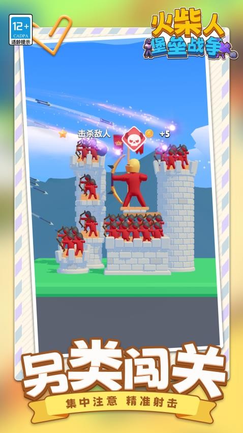 火柴人堡垒战争最新版是一款基于经典火柴人题材打造的创新策略塔防游戏,在这个简约而不简单的世界里,玩家将扮演火柴人军团的指挥官,面对如潮水般涌来的敌人,通过合理布置弓箭手军团,构建坚不可摧的防御阵线,超过100个精心设计的关卡,每一关都需要玩家巧妙利用地形和兵种特点,制定全方位的战场部署策略,方能取得最终胜利。